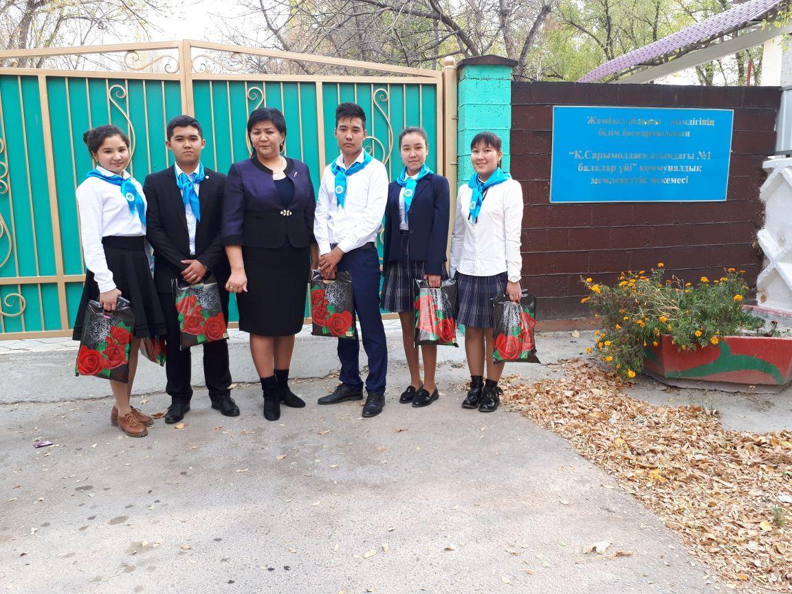 Н.Ә. Назарбаевтың"Болашаққа бағдар: рухани жаңғыру" бағдарламалық мақаланы іске асыру мақсатында "Жүрекке жылу" жобасы аясында Мектеп директоры Данева Гүлзат Әлімжанқызы бастаған бір топ ұжым Тараз қаласындағы №1 Сарымолдаев балалар үйіне және "Үміт" балалар үйіне қамқорлық көмек көрсетті.