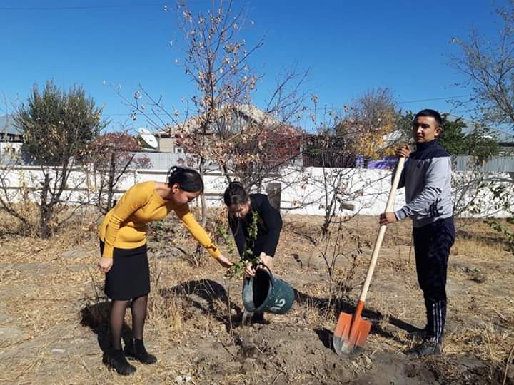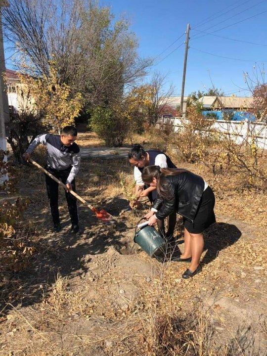 Мектебіміздің жас мамандары мектеп ауласына тал егу сәті