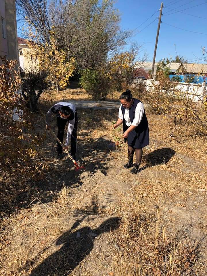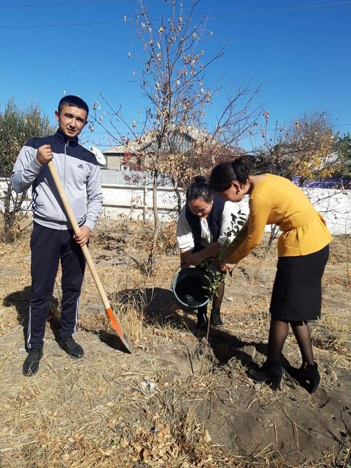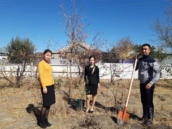 » Мектебіміздің жас мамандары мектеп ауласына тал егу сәті