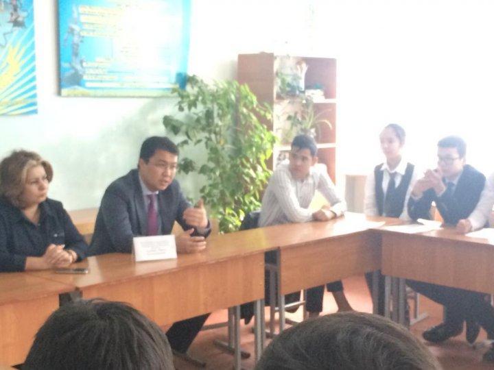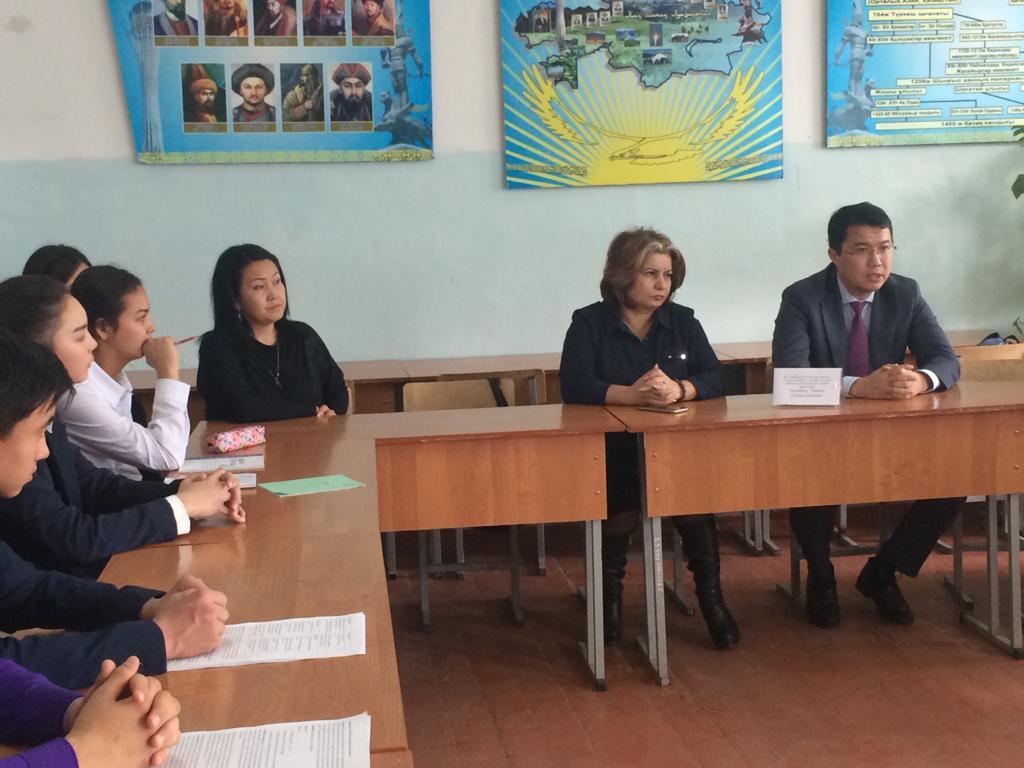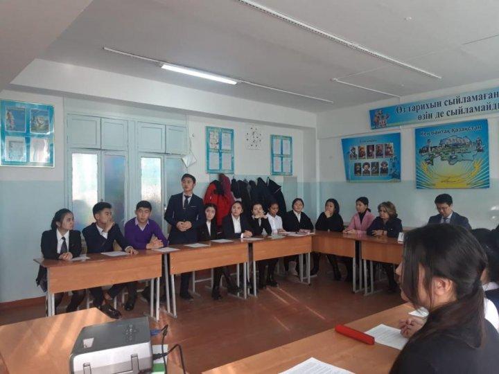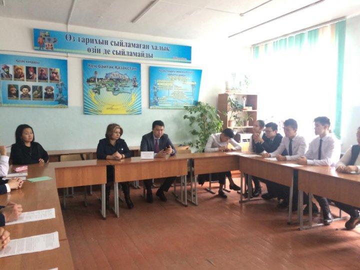 "Адал ұрпақ" клубының мүшелерімен кездесу мақсатында 10"Ә" сыныбында "Біз жемқорлыққа қарсымыз!" тақырыбында ашық тәрбие сағаты өткізілді. Сабаққа ҚР сыбайлас жемқорлыққа қарсы іс-қимылдар агенттігі депаартаментінің бірінші орынбасары Тюлебаев Равиль Куанышбекович жіне Тараз қалалық білім бөлімінің әдіскері Алиева Марина Гусейновна қатысты.Тәрбие сағатының соңында қонағымыз РавильКуанышбекович өз ойын білдіріп , оқушылармен парасаттылық , адалдық туралы сұхбаттасты . Сынып жетекші Сейтқұлова Гаухар Мамбетқызы