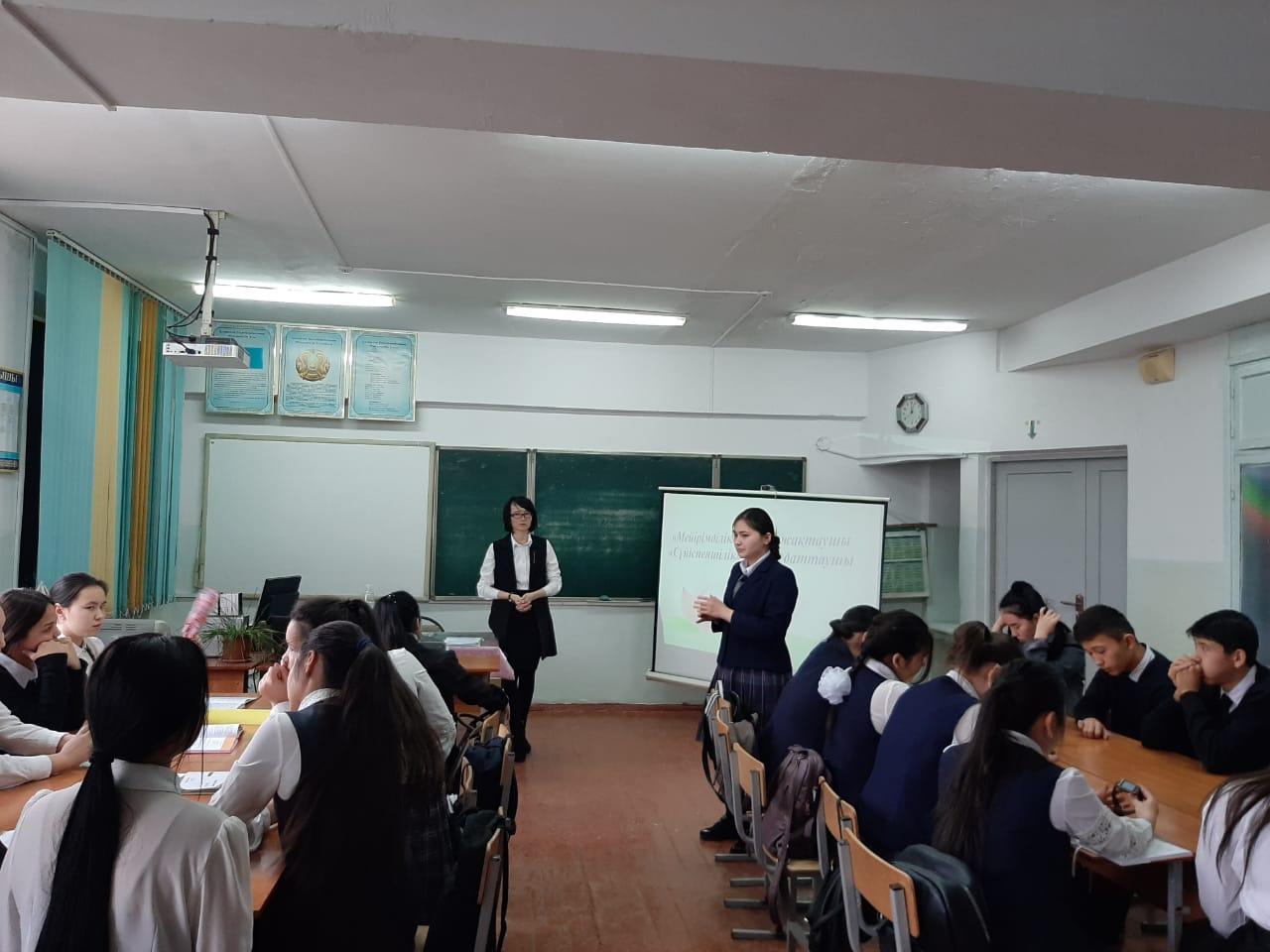 "Өзін-өзі тану: Махаббат пен Шығармашылық педагогикасы" онкүндігі аясында ""Ізгілік -адамның басты рухани адамгершілік құндылығы" тақырыбында пікір талас болып өтті. Білім алушылар түрлімысалдар келтіре отырып, өз ойларын ортаға салды.