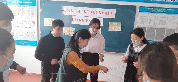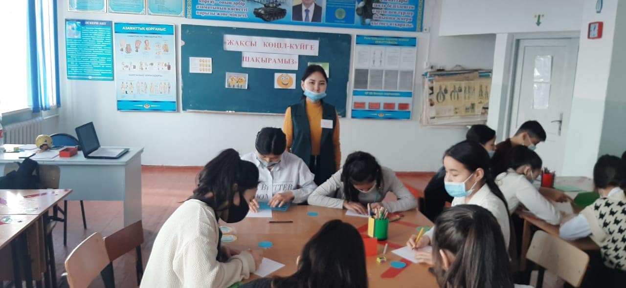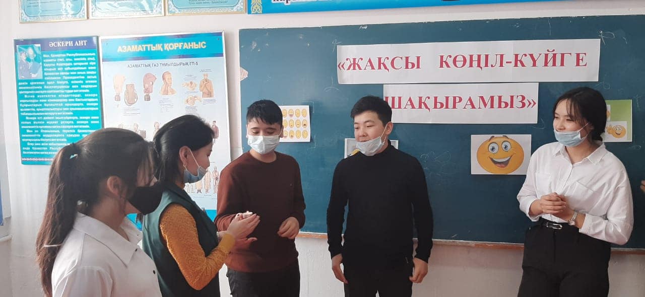 Психологиялық кеңес беру айлығы аясында "Жақсы көңіл-күйге шақырамыз" тақырыбында 9 "А" сынып оқушыларына тренинг өткізілді. Мақсаты: Оқушылардың ерікті бақылау дағдысын дамыту және көңіл-күйді реттеу. Балалардың өз ойларын ашық айтуға баулу, қарым-қатынас жасауға, ұйымшылдыққа тәрбиелеу.