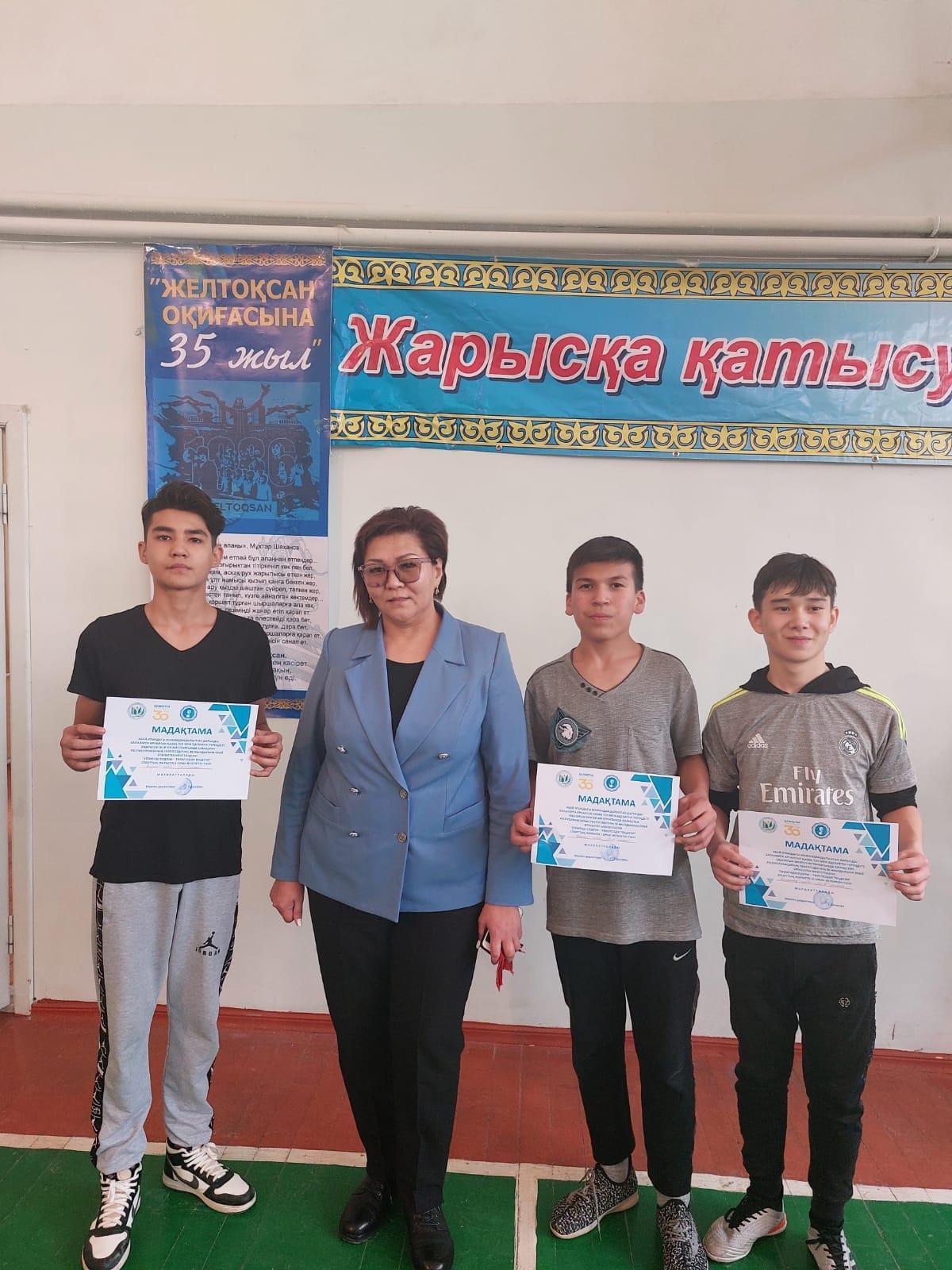 ҚР Тәуелсіздігінің 30жылдығы қарсаңында, Желтоқсан көтерілісінің 35 жылдығына орай, "Денсаулық күніне" арналған, Абай атындағы мектепте дене шынықтыру пәні бірлестігінің ұйымдастыруымен жоғарғы сынып оқушылары арасында спорттық ойындардан эстафеталық жарыс өткізілді. Барлық қатысушылар мектеп басшысы Гүлзат Әлімжанқызы Данаеваның алғыс хатымен марапатталды.