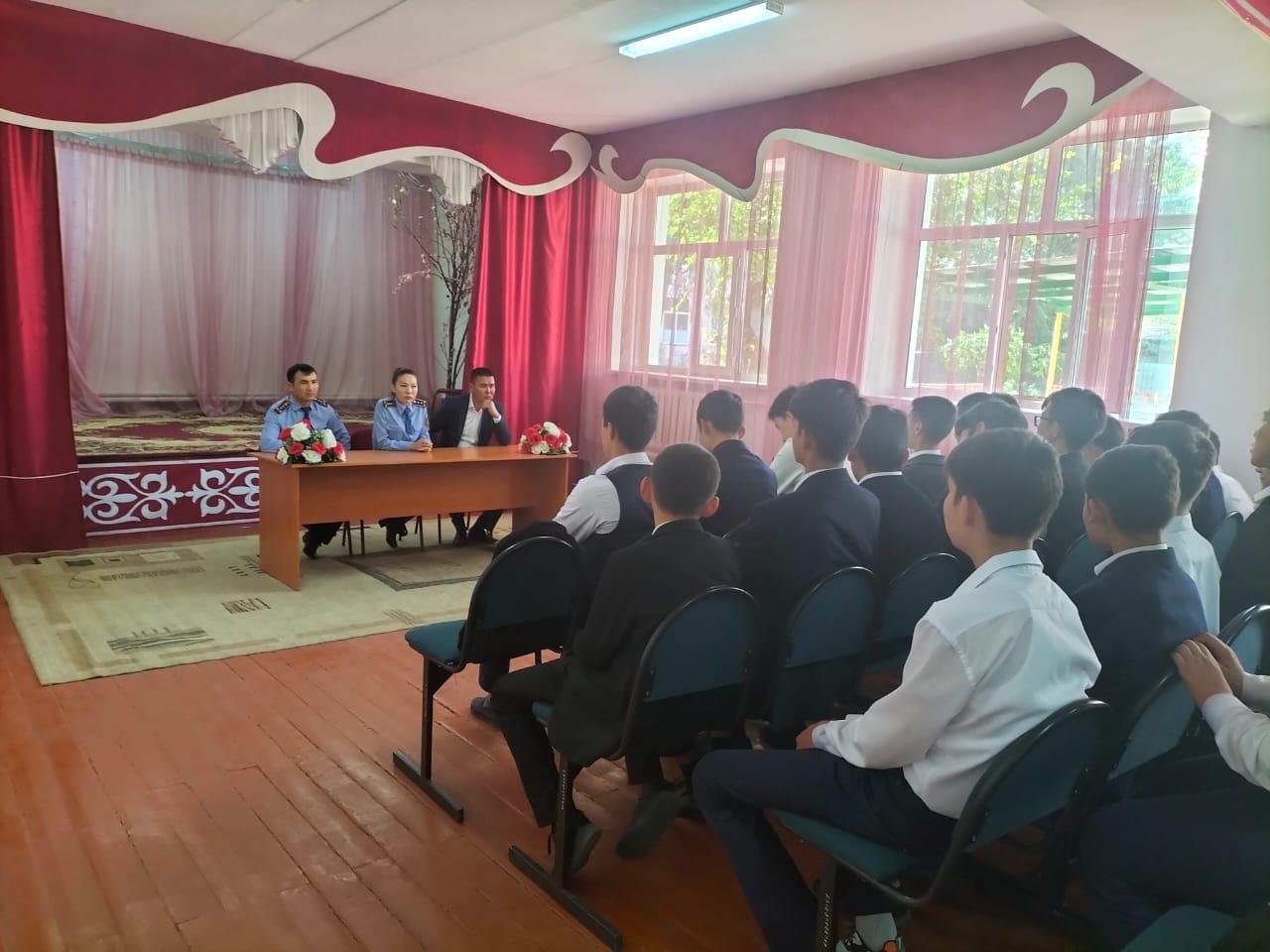 Мектебімiзде директордың құқық iсi жөнiндегi орынбасары Айтимбетов Бiржан Абдрасылұлы және мобильдік топтың қатысуымен 8,9,10,11 сынып оқушыларына "Құқық бұзушылықтың алдын алу" және "Қыздар арасындағы ерте жүктіліктің алдын алу" тақырыбында жиналыс өтті.