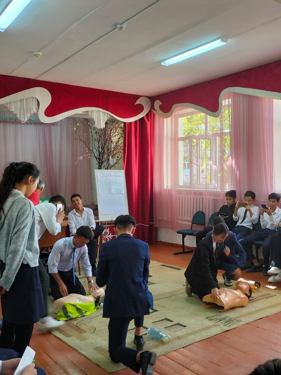 11.10.2022 жылы "Инновация" оқу және бiлiм беру орталығындағы дәрiгер конструктор Амангельды Сулейменович 9-10 сынып оқушыларына және мектеп мұғалімдеріне "Шұғыл медициналық көмек көрсету дағдылары және "Жүрек қан тамырлары қызметінің жiтi бұзылуы, жүрек тоқтаған кезіндегі қарқынды терапия алгоритмі" тақырыбында тренинг өткізді.
