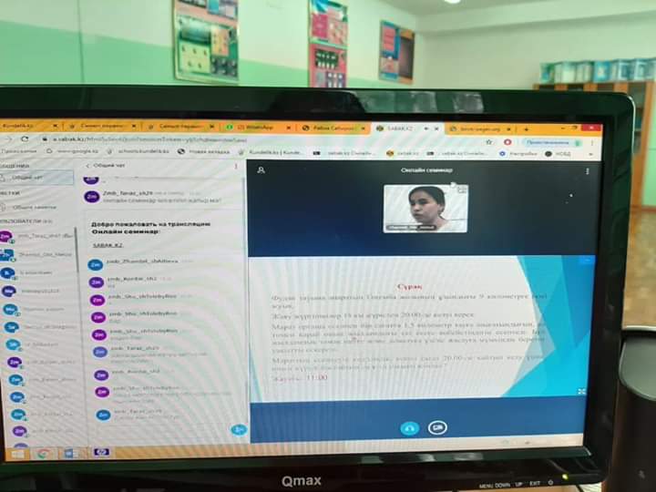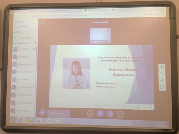2019 жылдың 22 қарашасында "Сырттай оқыту " жобасы аясында математика пәнінен Шолпан Нұржауқызы 7 сынып оқушыларына арналған "Pisa тапсырмаларын шешу жолдары " тақырыбында облыстық онлайн дәрісін өткізді