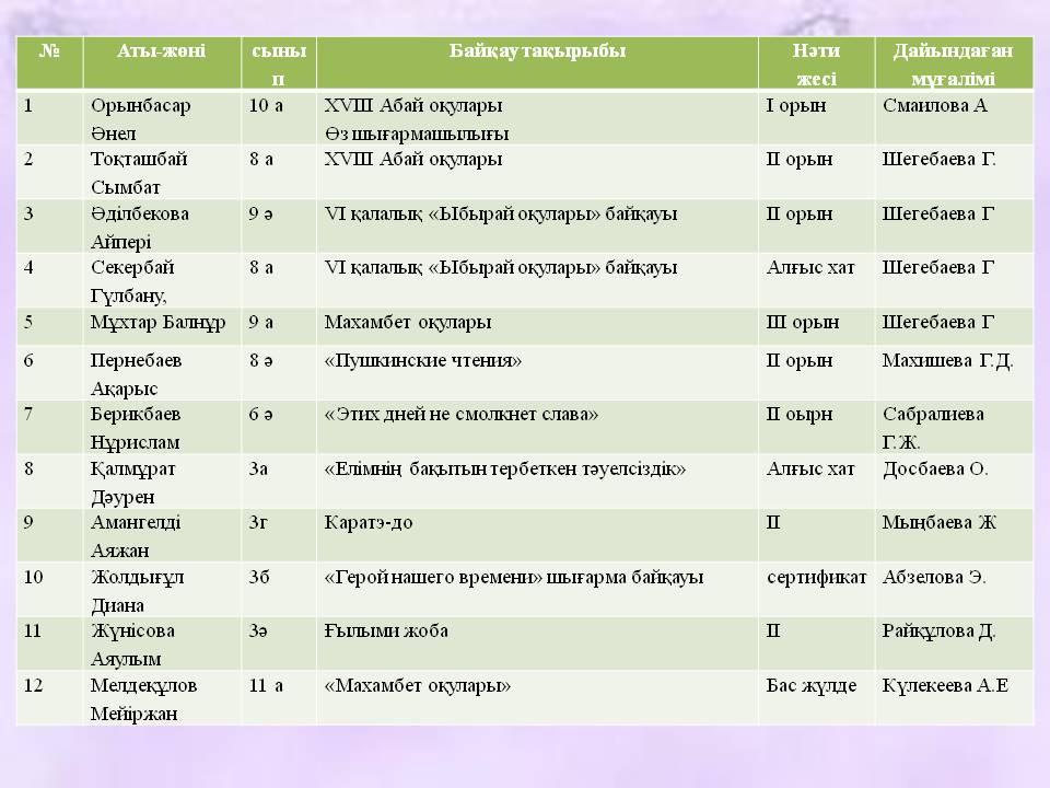 Оқушылар жетістіктері