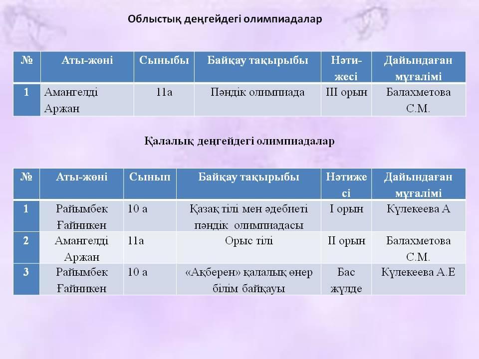 Республикалық деңгейдегі олимпиадалар