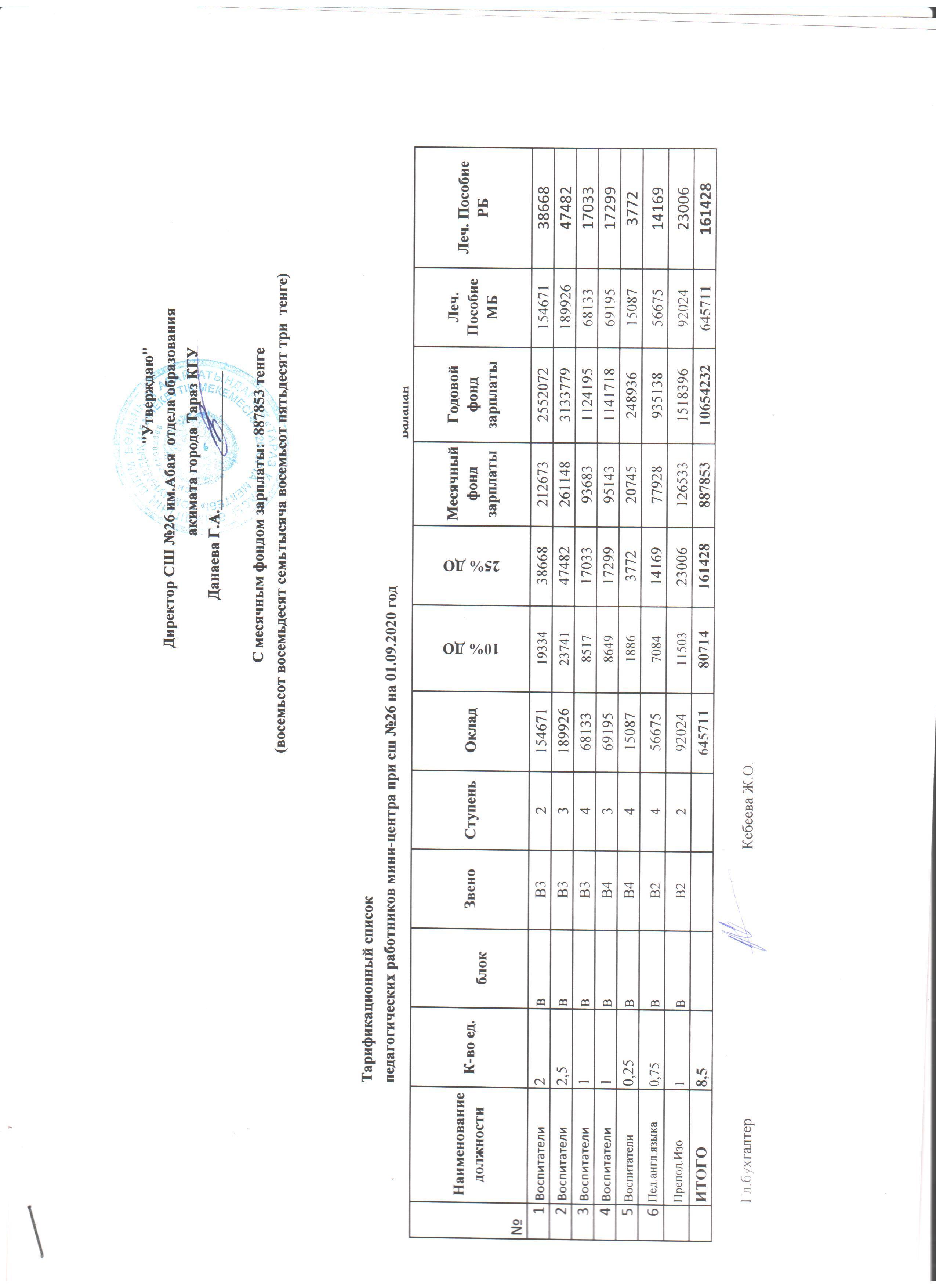 Штаттық кесте мектеп