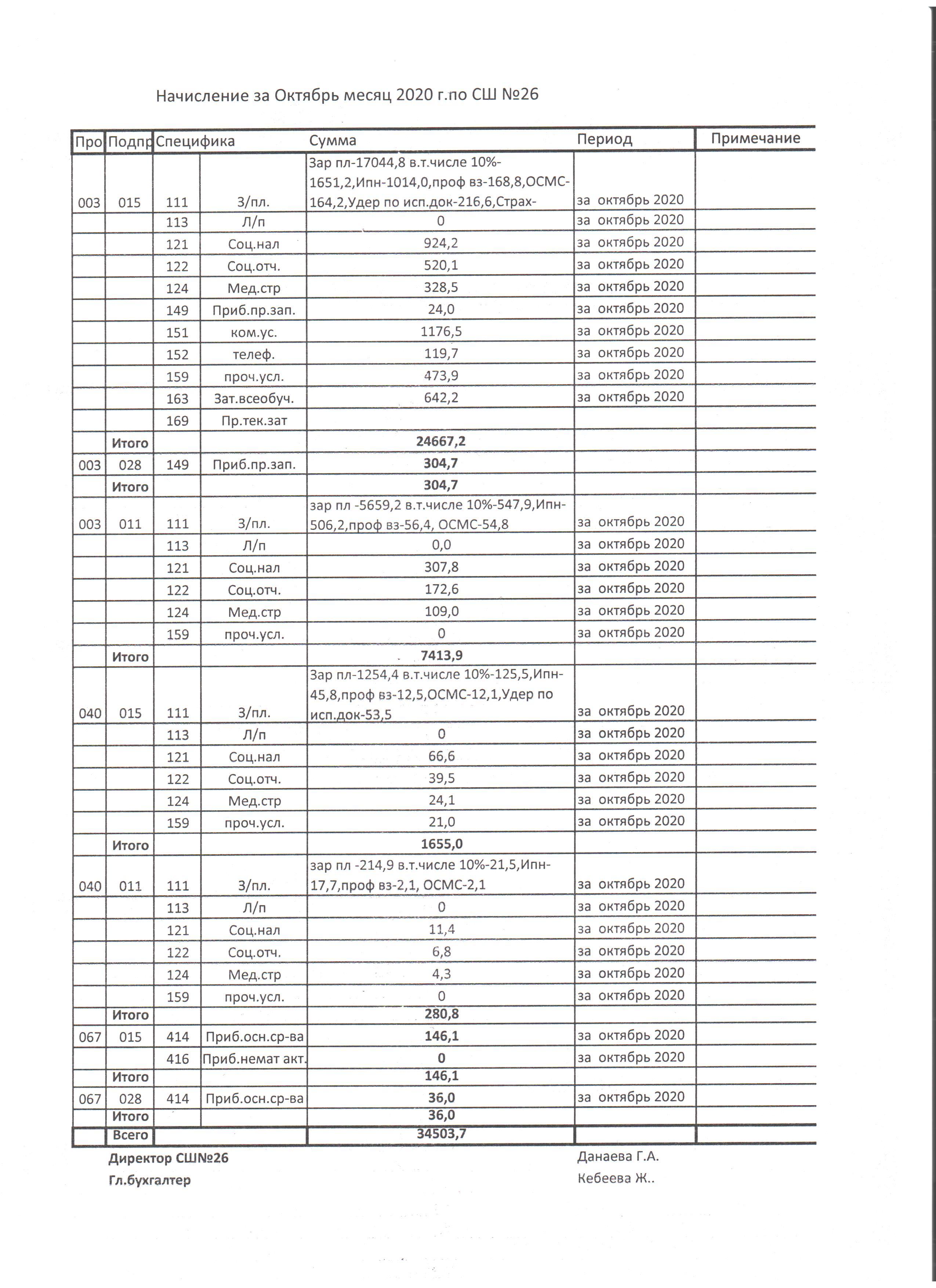 начисление октябрь