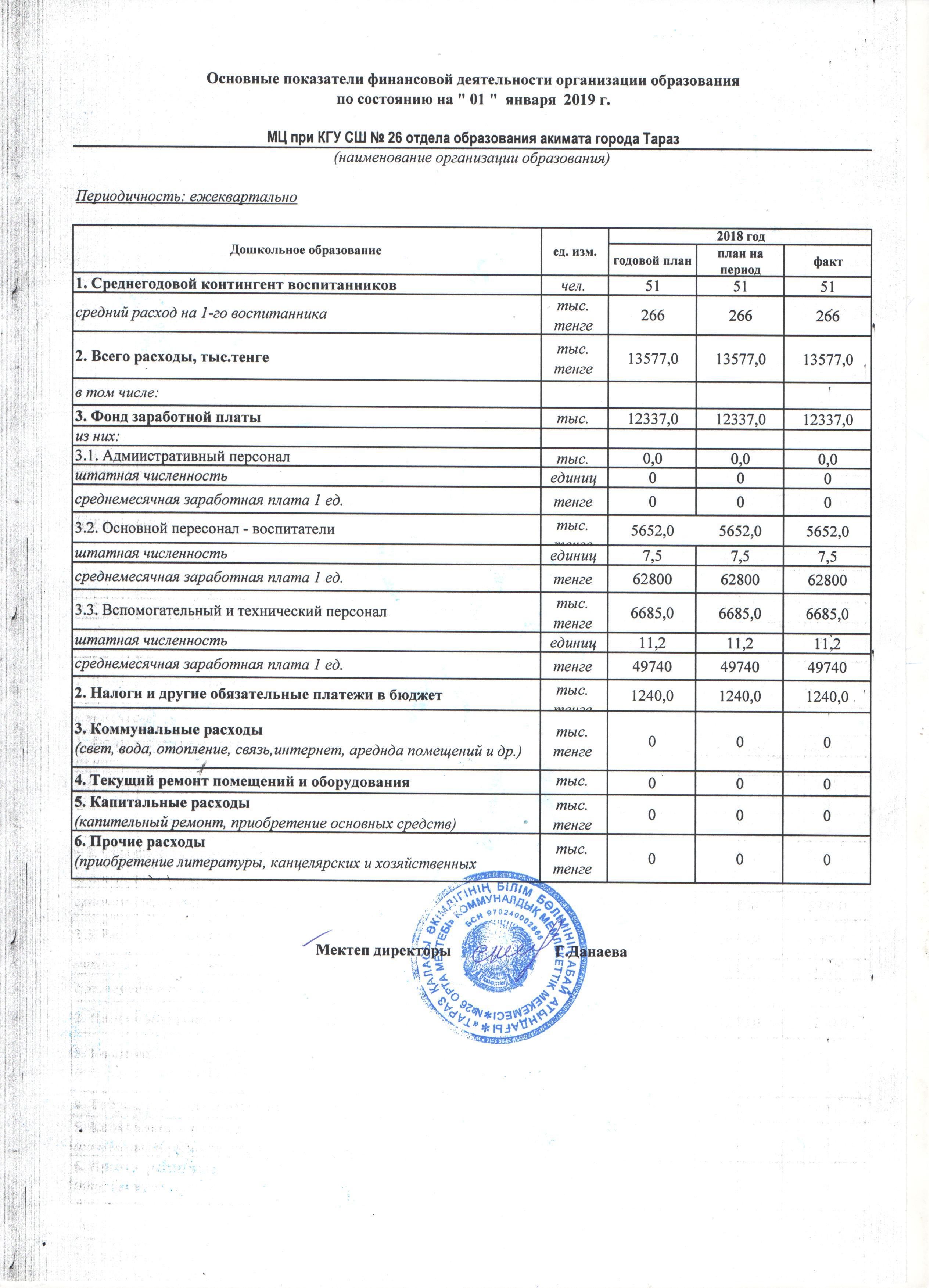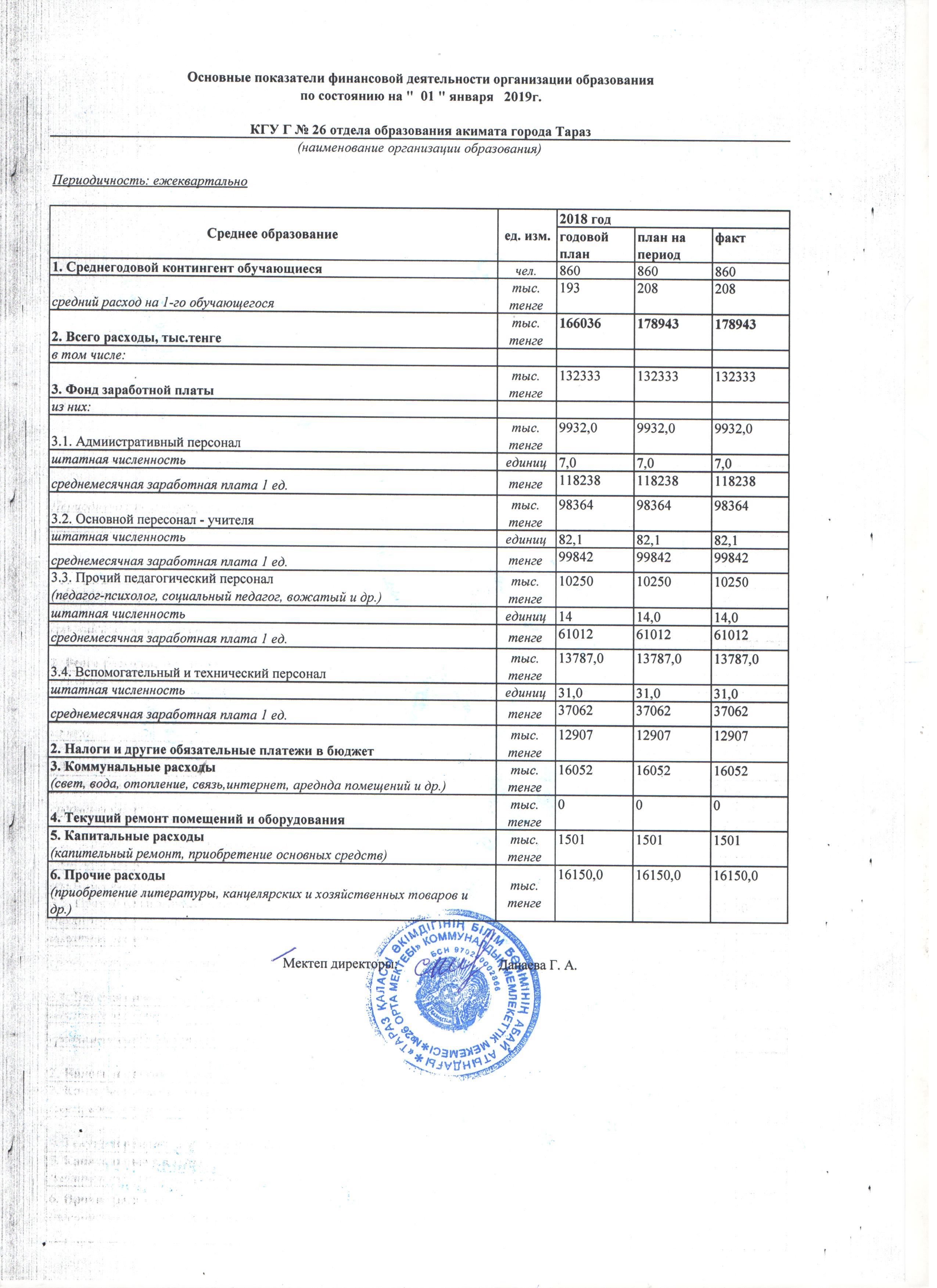 Мектептегі қаржылық қызметің негізгі көрсеткіштері