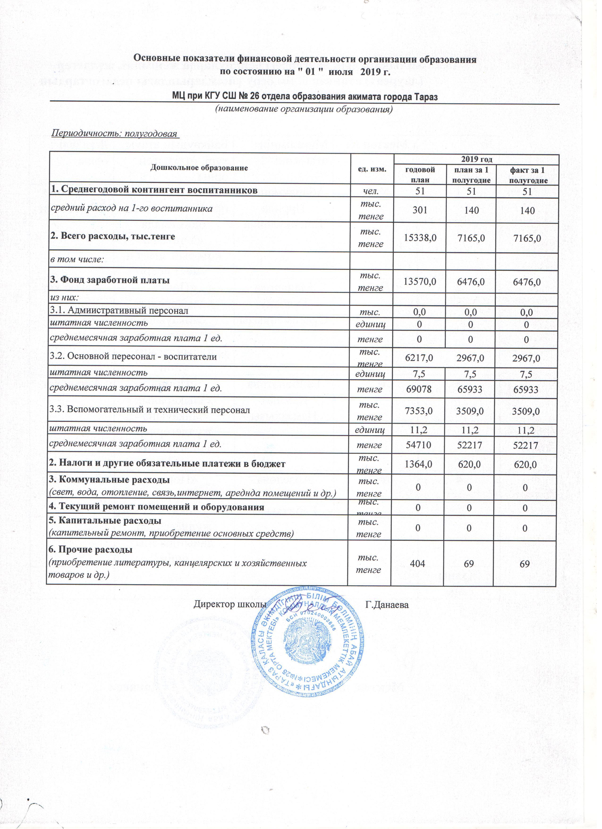 » Основные показатели финансовой деятельгости организации образования