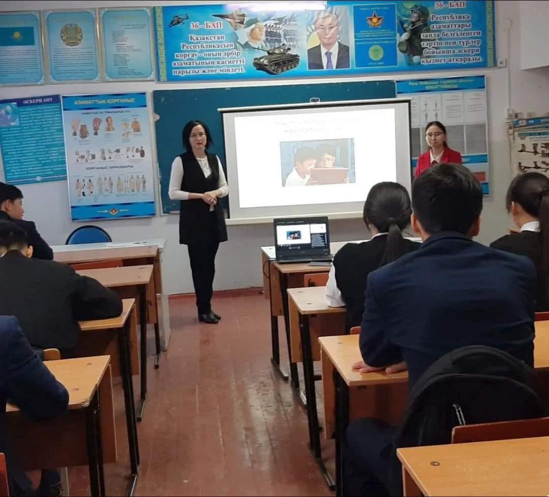 Мектебімізде мектеп психологтары: Муханова Ботакөз және Мұстахи Гүлназ 5-9 сынып оқушыларына "Қауіпсіз интернет, буллинг және кибербуллинг" тақырыбында психологиялық ағарту жұмыстарын жүргізді. Мақсаты: Оқушыларға интернетті дұрыс пайдалану жолдары және зорлық-зомбылықтың алдын-алу барысында психологиялық көмек көрсету. Нәтижесінде оқушылар берілген және көрсетілген ақпаратты толық түсініп, қойылған сұрақтарға өз ойларын еркін жеткізді.