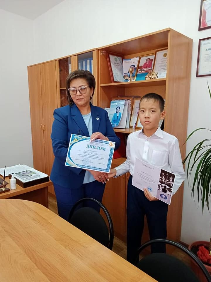 18 октябрь 2021 0 1 2 3 4 5 Шахматтан облыстық турнир 6"А" сынып оқушысы Бақыт Алинұр, шахматтан облыстық турнирде 3 жүлделі орынды иеленді. Алинұрдың жетекшісі мектебіміздің білікті ұстазы Әлжан Жусанбаев.