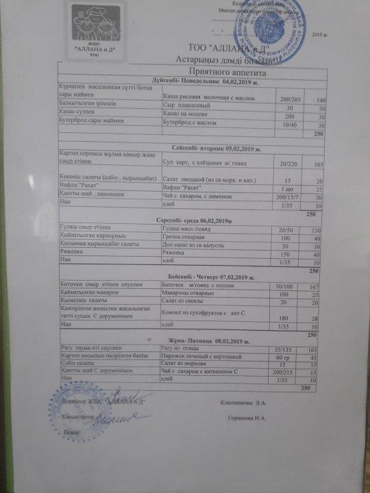 » Ақпан айындағы мектеп оқушыларының асханадағы ас мәзірі
