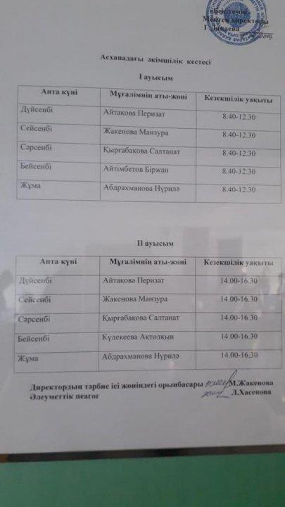 Ақпан айындағы мектеп оқушыларының асханадағы ас мәзірі