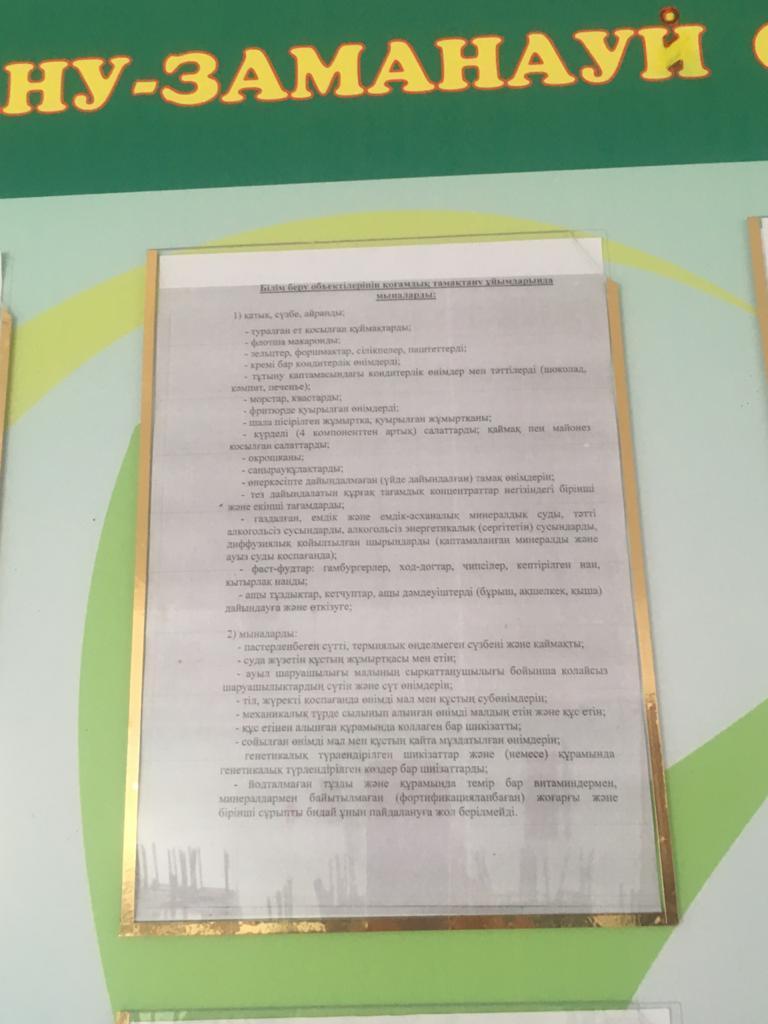 » Мектеп асханасында пайдалануға тыйым салынған тағамдар тізімі