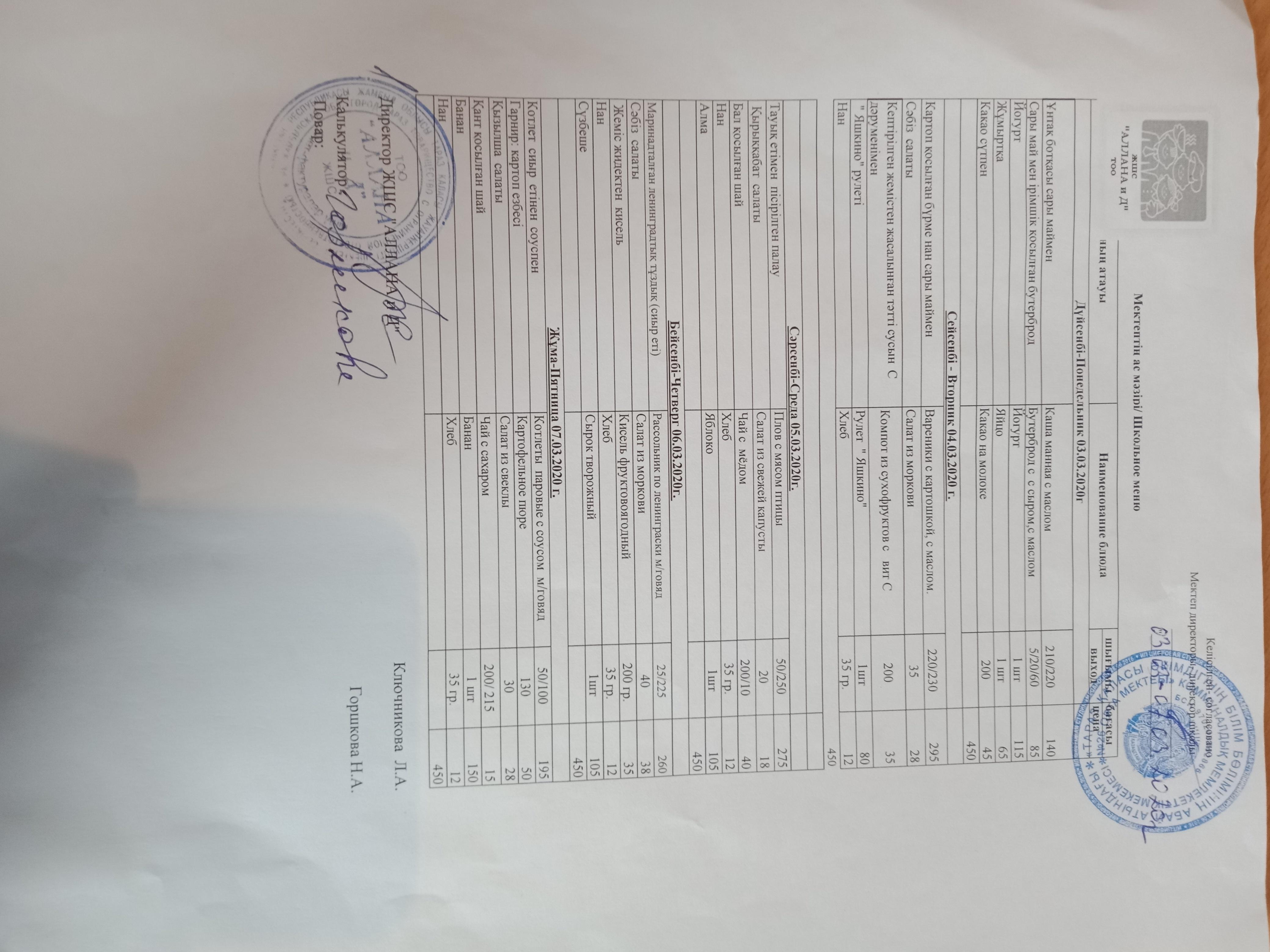 03.03.2020 -07.03.2020 Наурыз айындағы апталық ас мәзірі