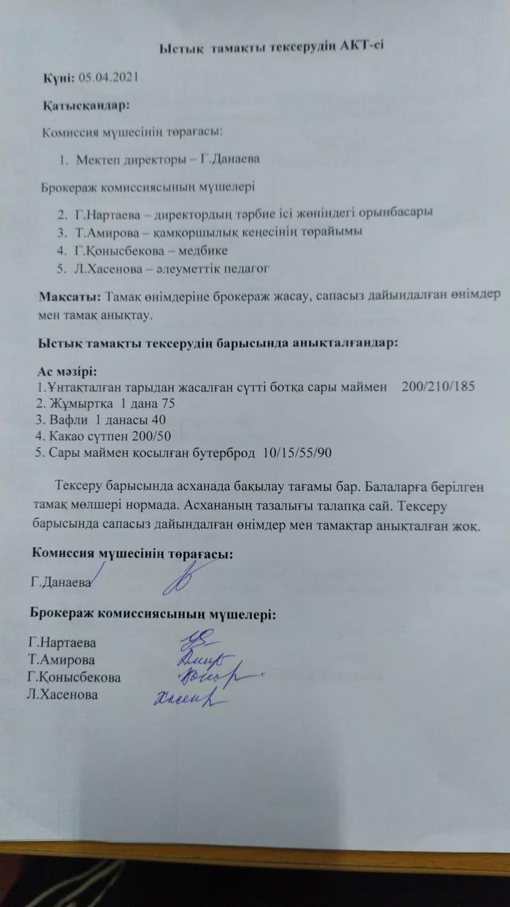 Брокераж комиссиясының ыстық тамақты тексеру қорытындысы