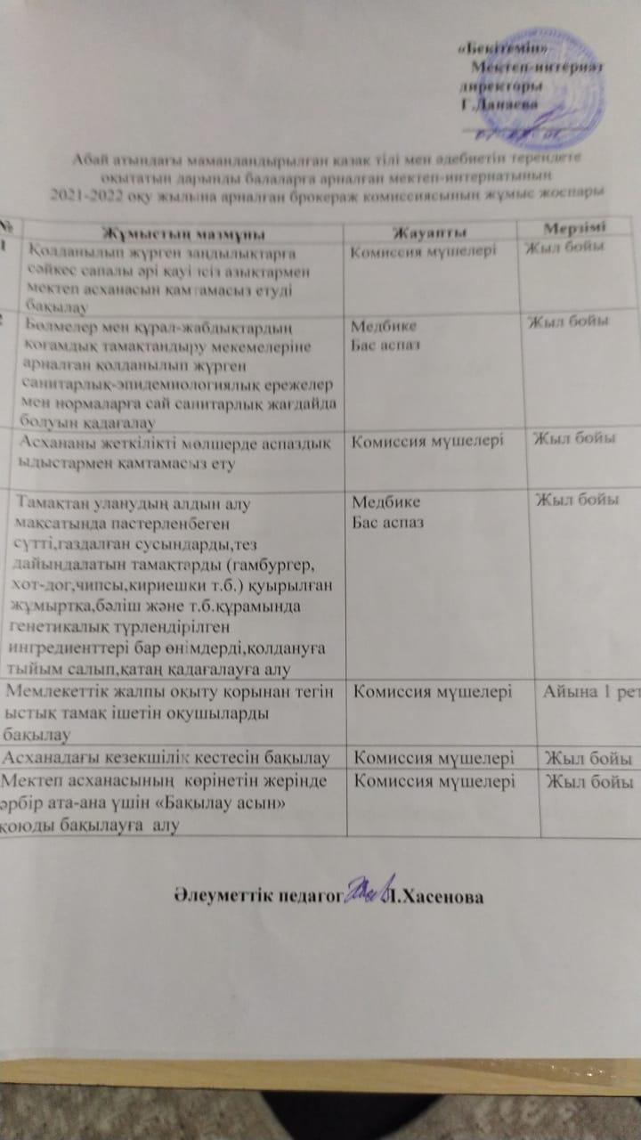 » Брокераж комиссиясының жұмыс жоспары