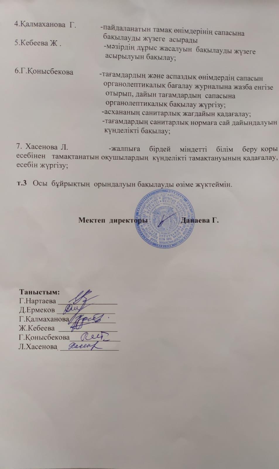» Тамақтың сапасына мониторинг жүргізу комиссия құру туралы бұйрық