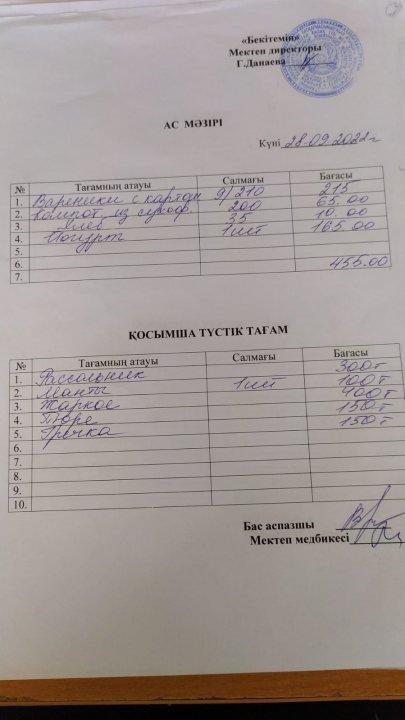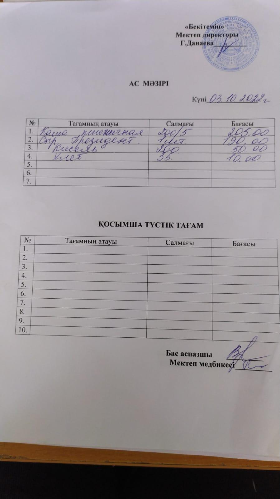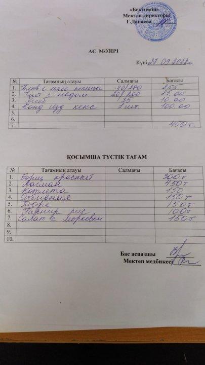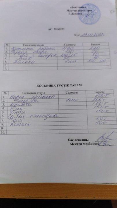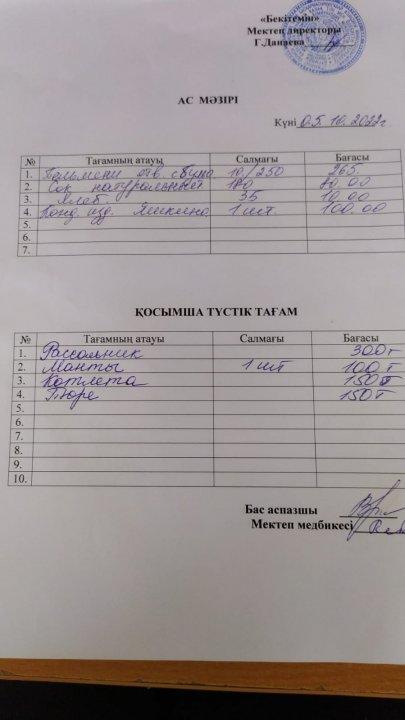 03.03.2020 -07.03.2020 Наурыз айындағы апталық ас мәзірі