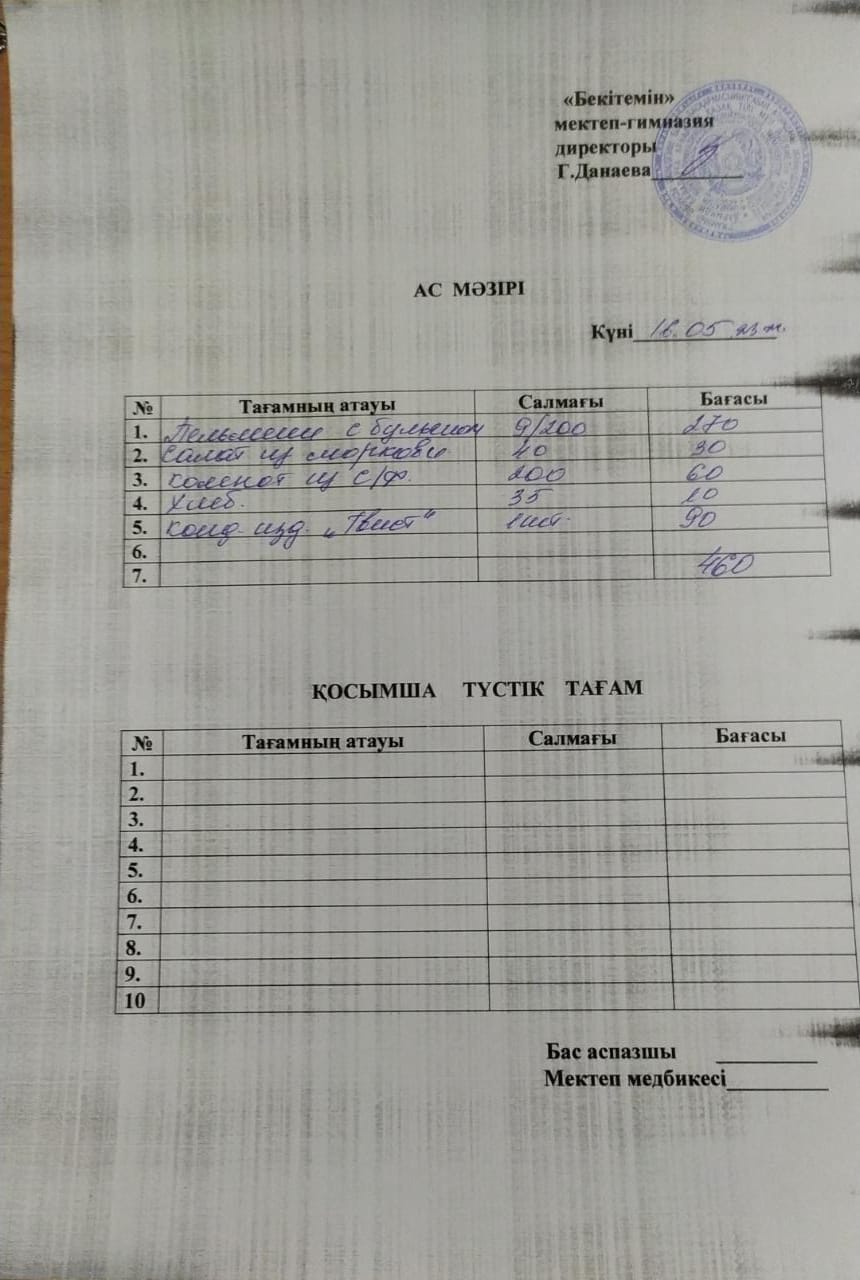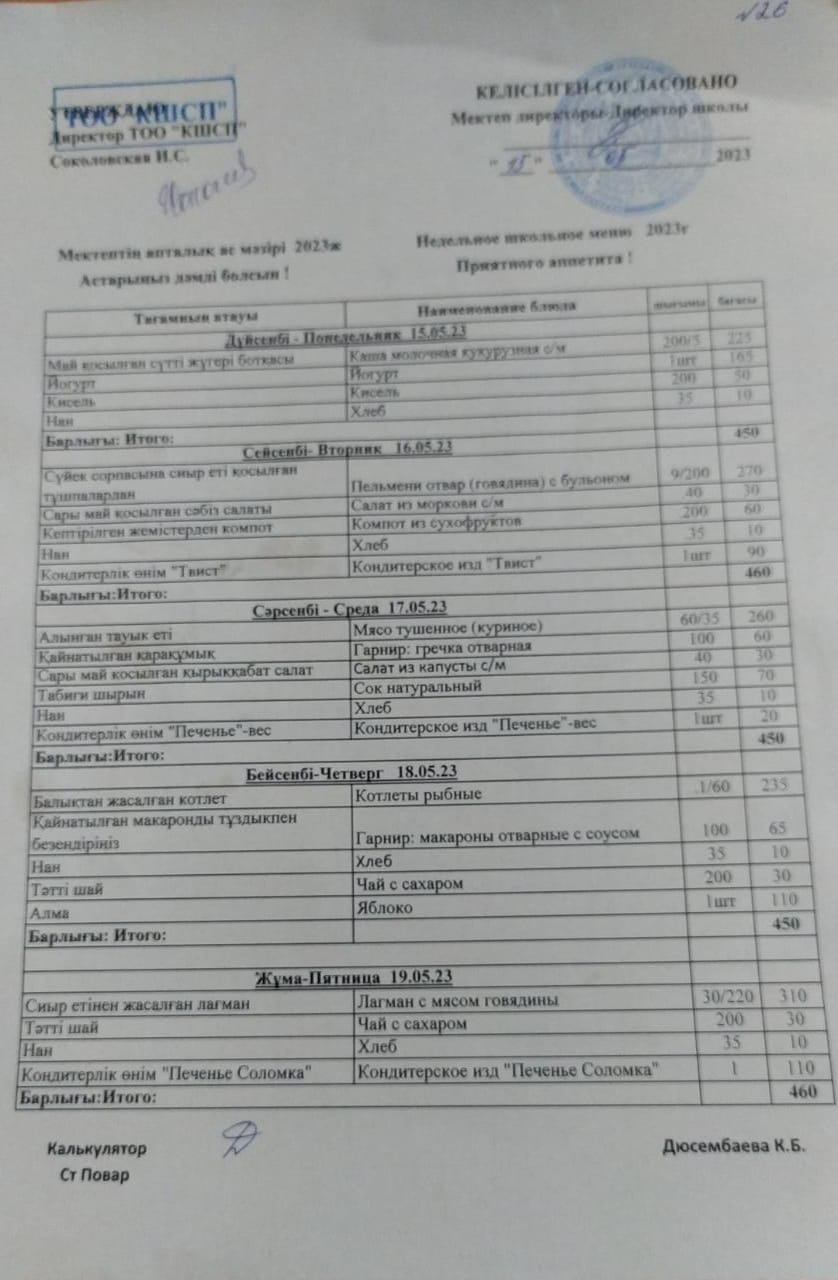 27.03.23-31.03.23 ж.ж күні аралығындағы мектеп асханасының апталық ас мәзірі