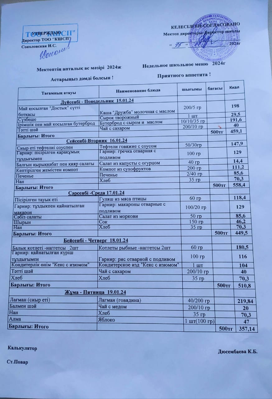 25.09-29.09.23ж.күнгі мектеп асханасының апталық ас мәзірі