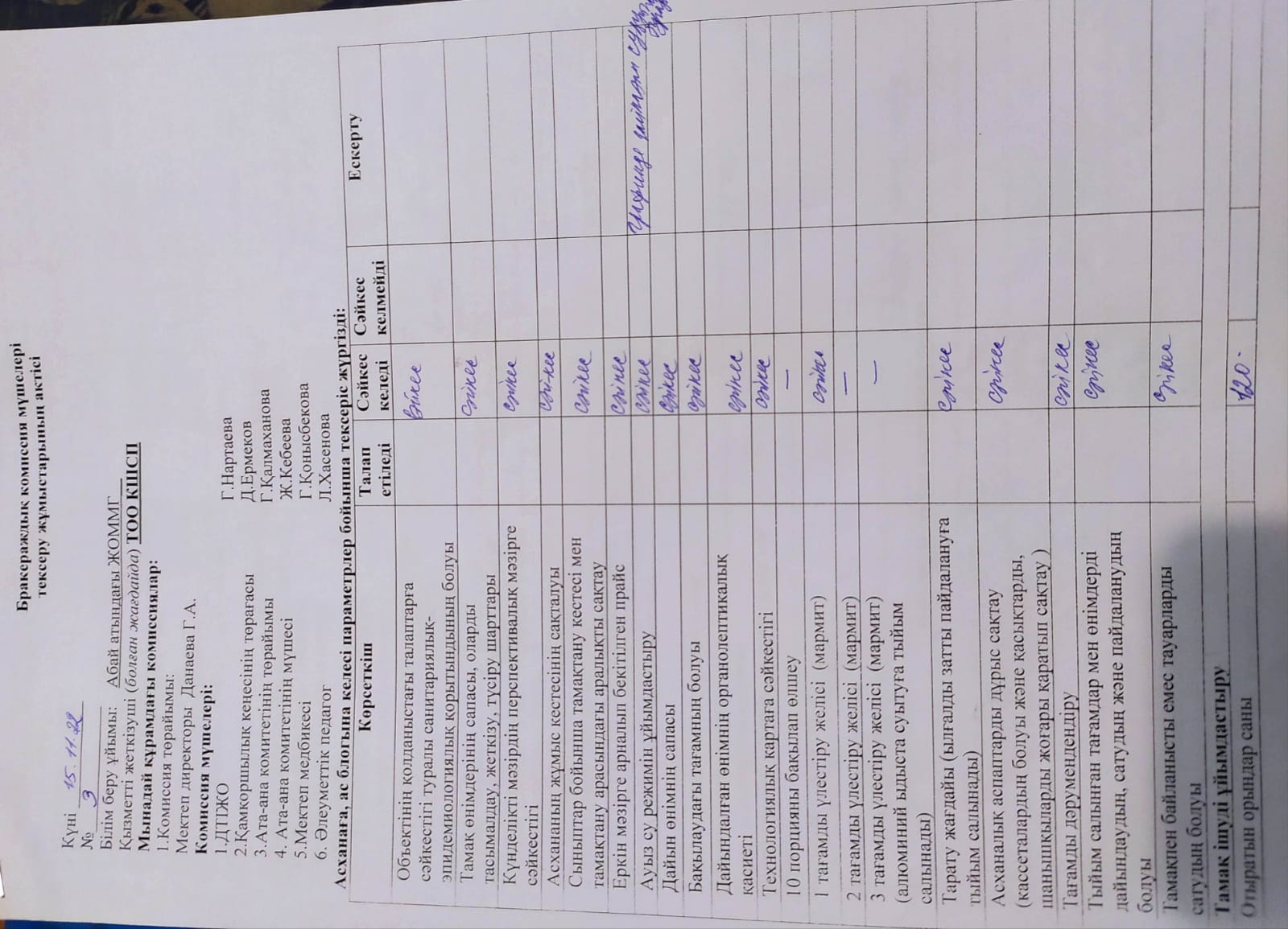 Брокераж комиссиясының асхананы тексеру АКТ-сі