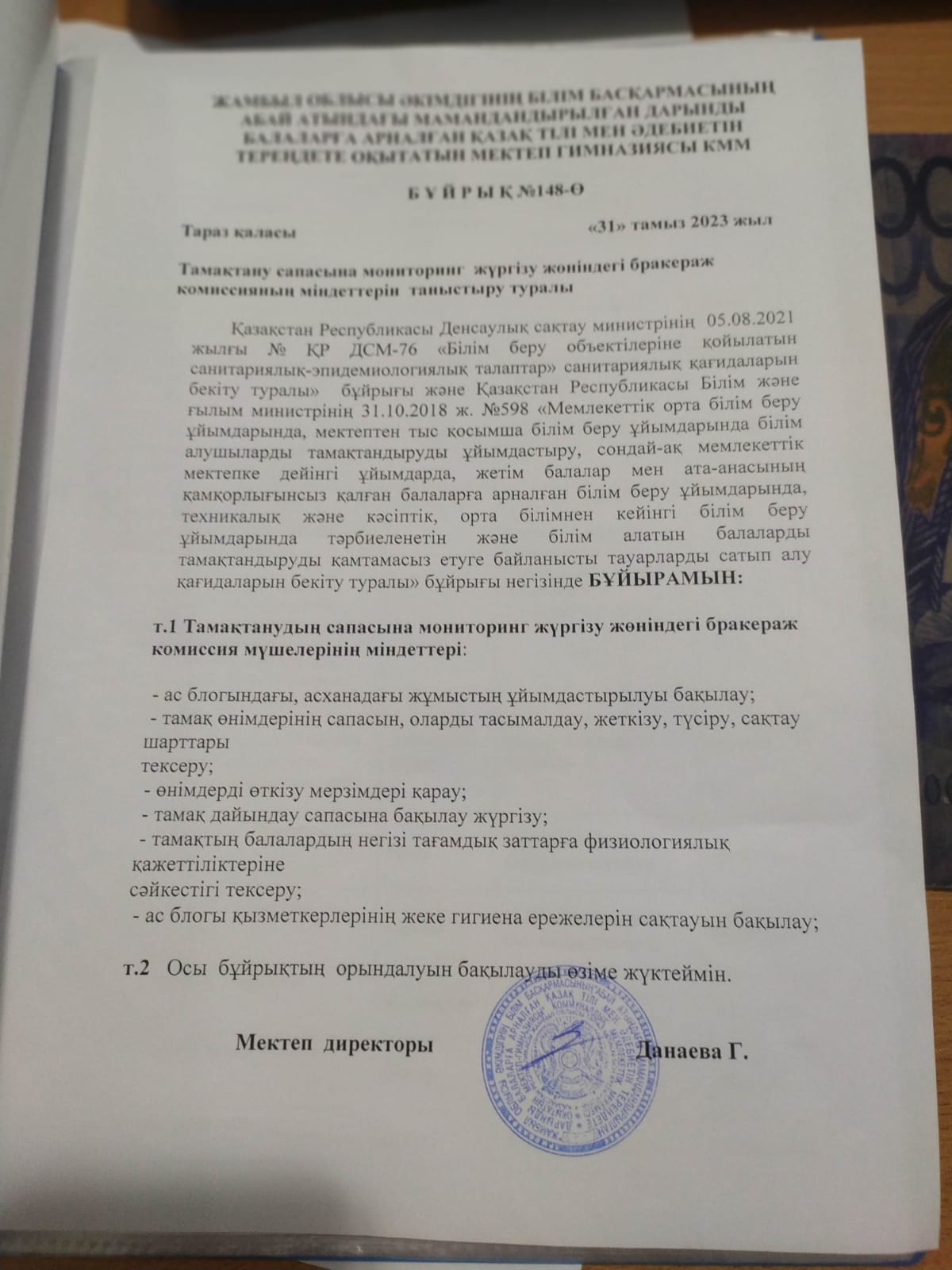 Брокераж комиссиясының асханасын тексеру АКТ-сі