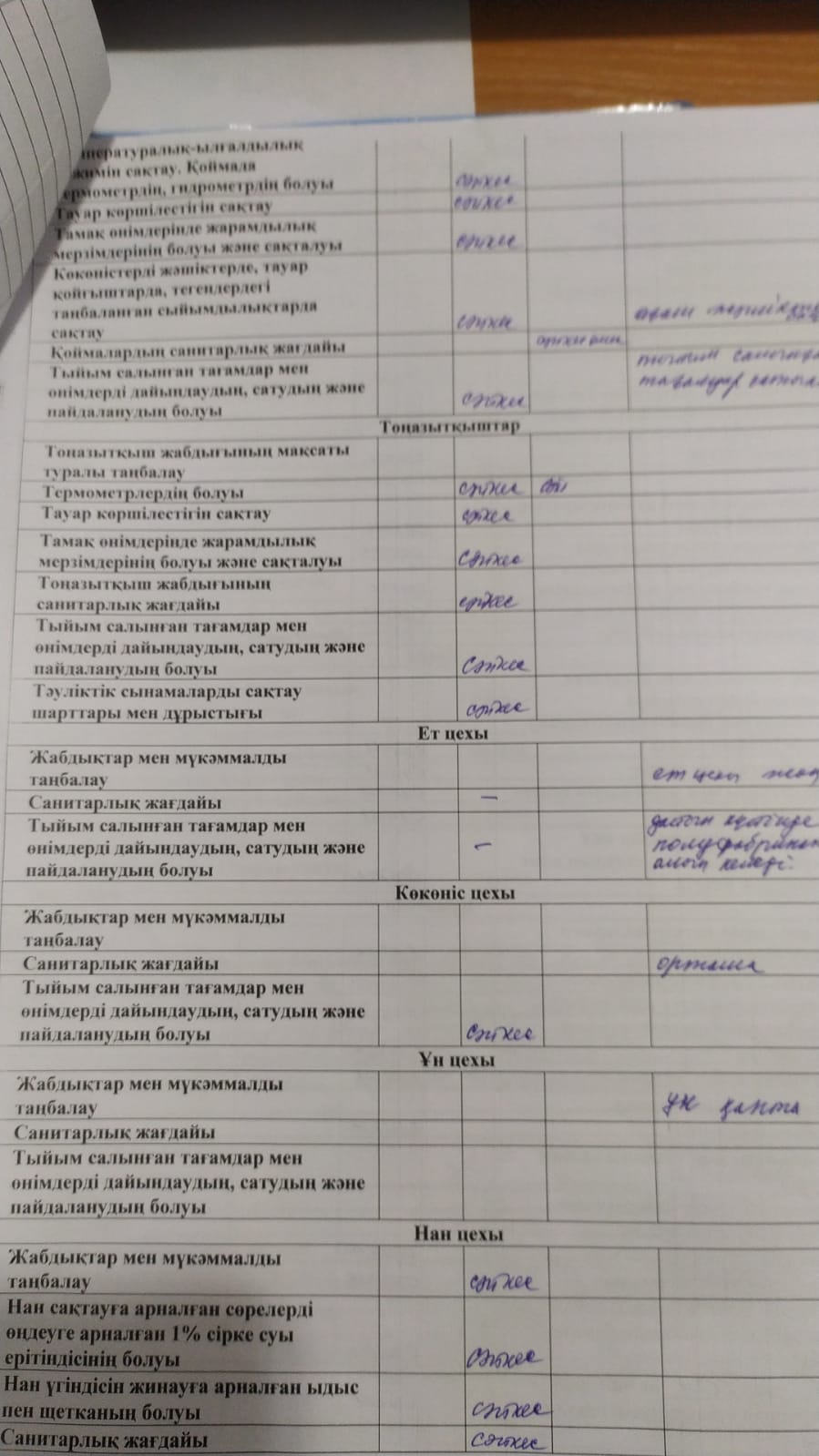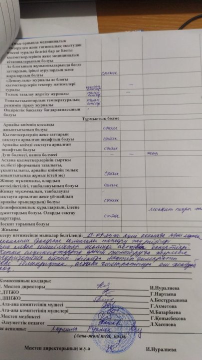 » Бракераж комиссиясының асхананы тексеру актісі