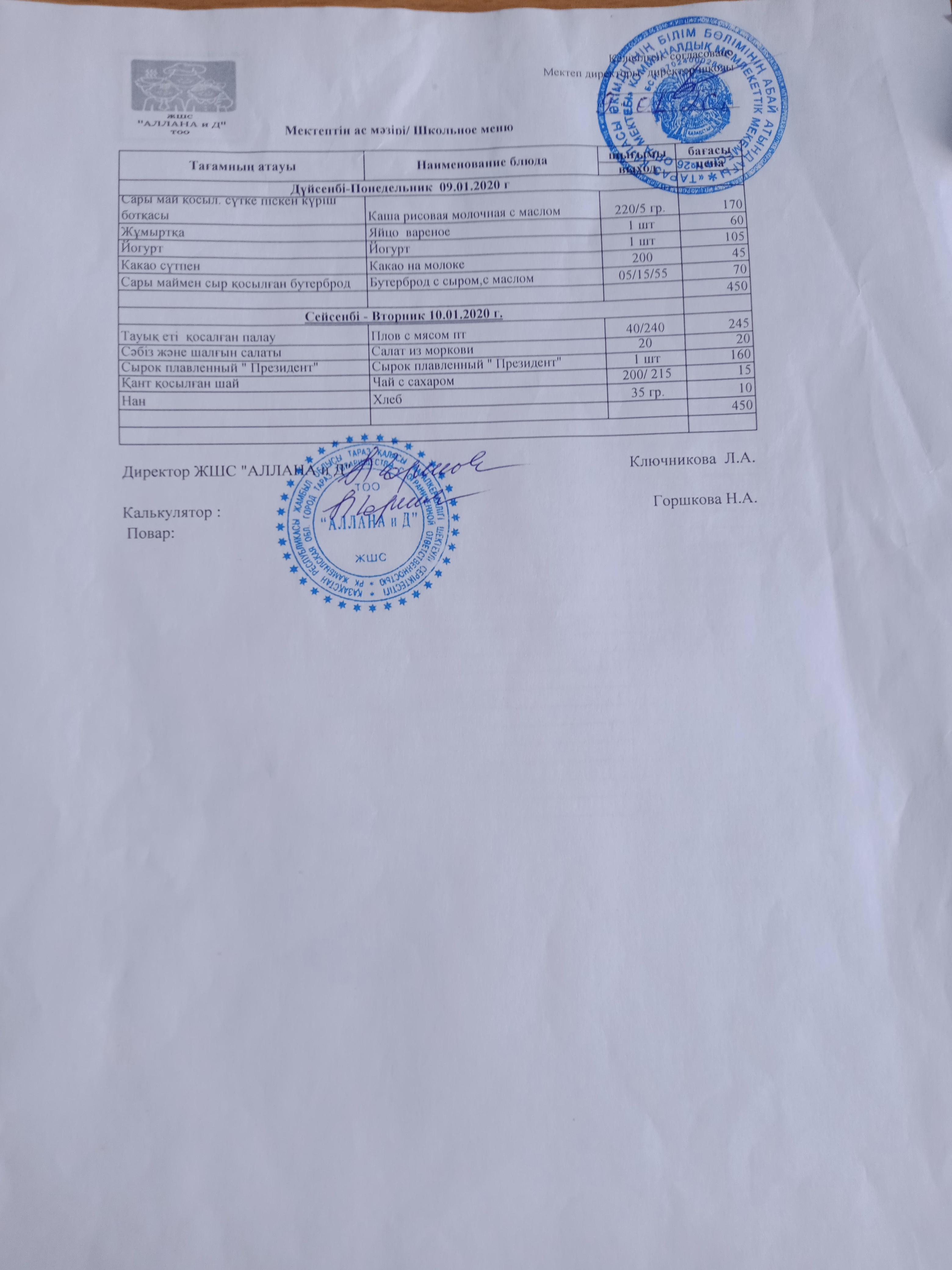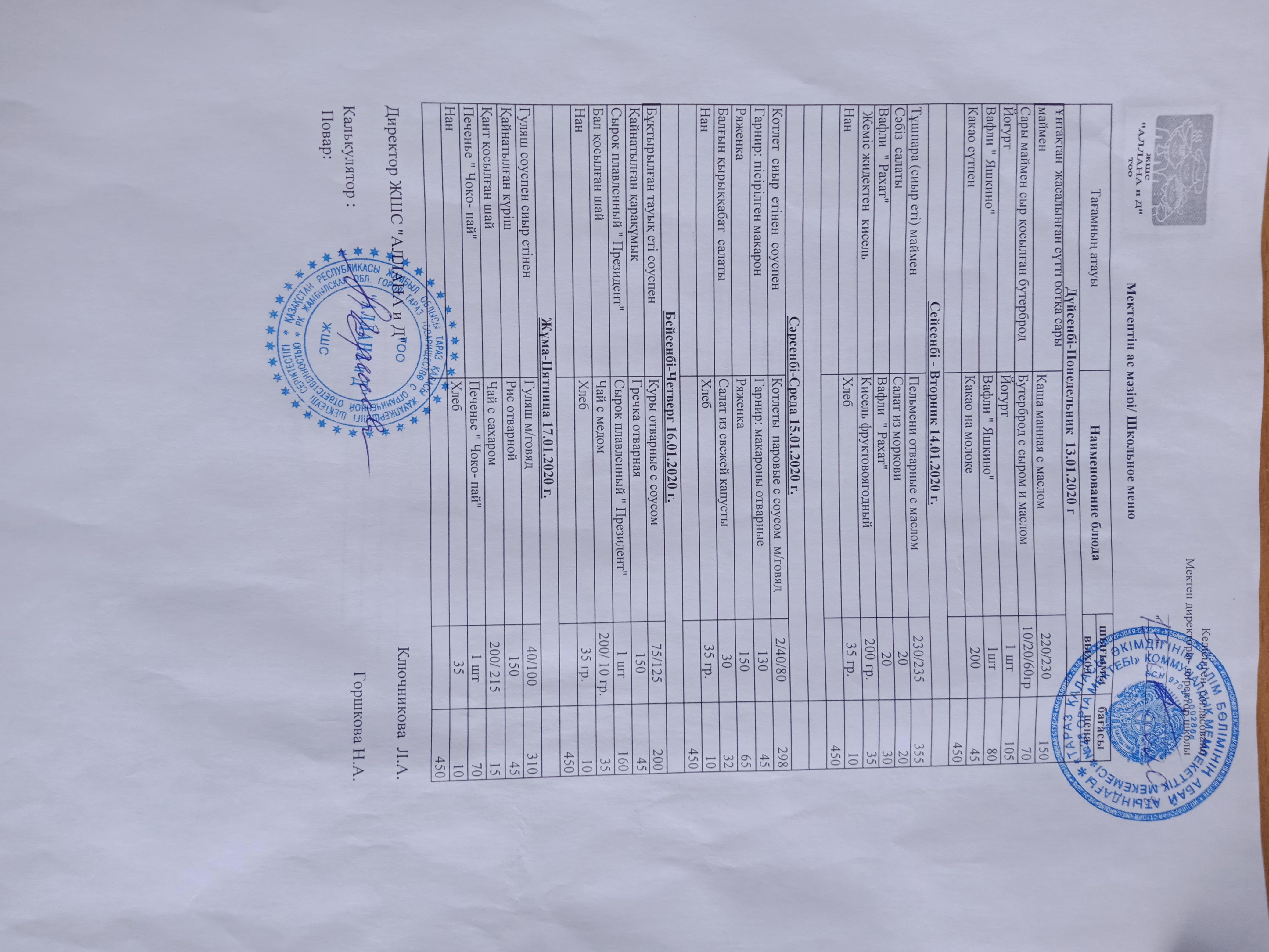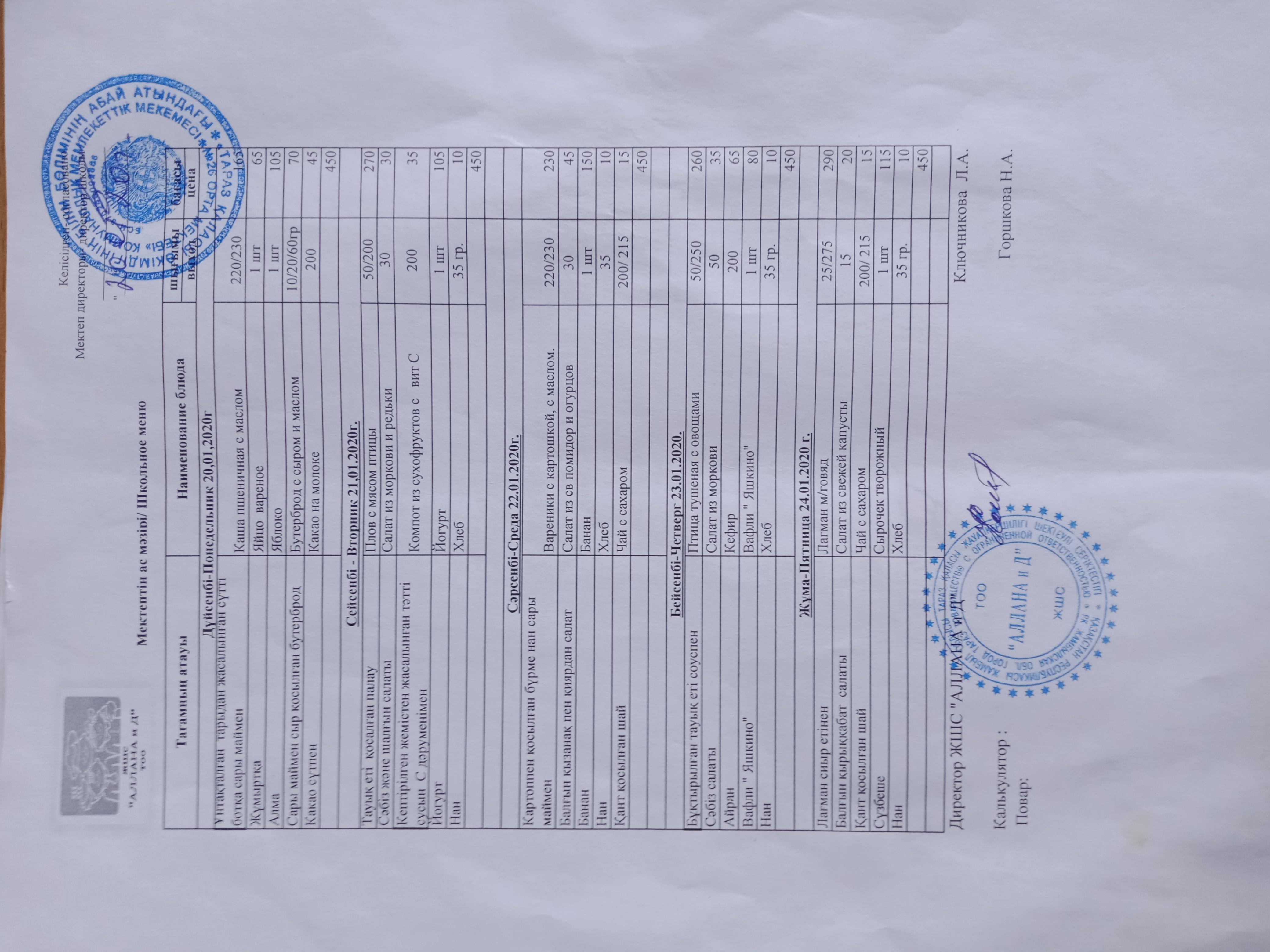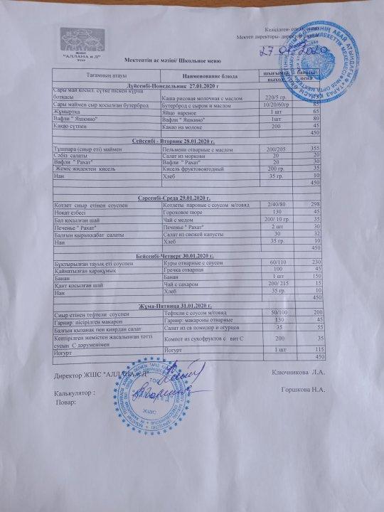 Ақпан айындағы мектеп оқушыларының асханадағы ас мәзірі