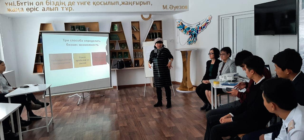 26 қараша күні директордың бейіндік ісі жөніндегі орынбасары С.Ш. Қырғабақованың ұйымдастыруымен "Өз бизнесіңді қалай бастау керек" тақырыбында 11 сынып оқушыларымен бизнес - тренинг өткізілді. Тренингті мектеп түлегі ТарӨМУ-нің аға оқытушысы А.В.Насибуллина жүргізді.