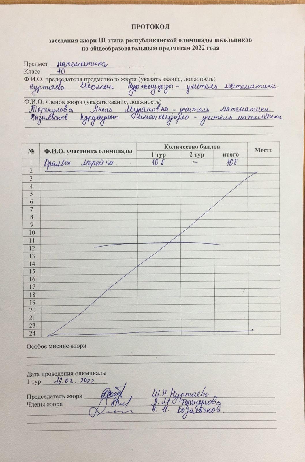 ПРОТОКОЛ 9 сынып математика физика
