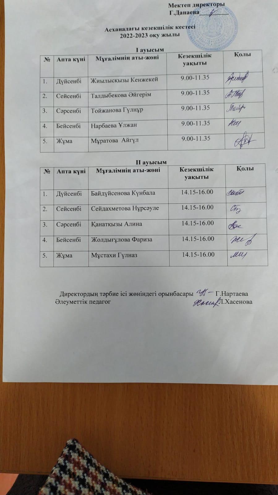 Сабақ кестесі