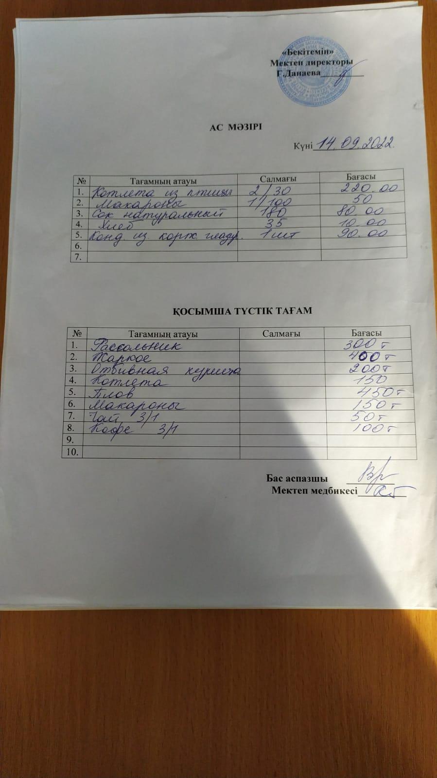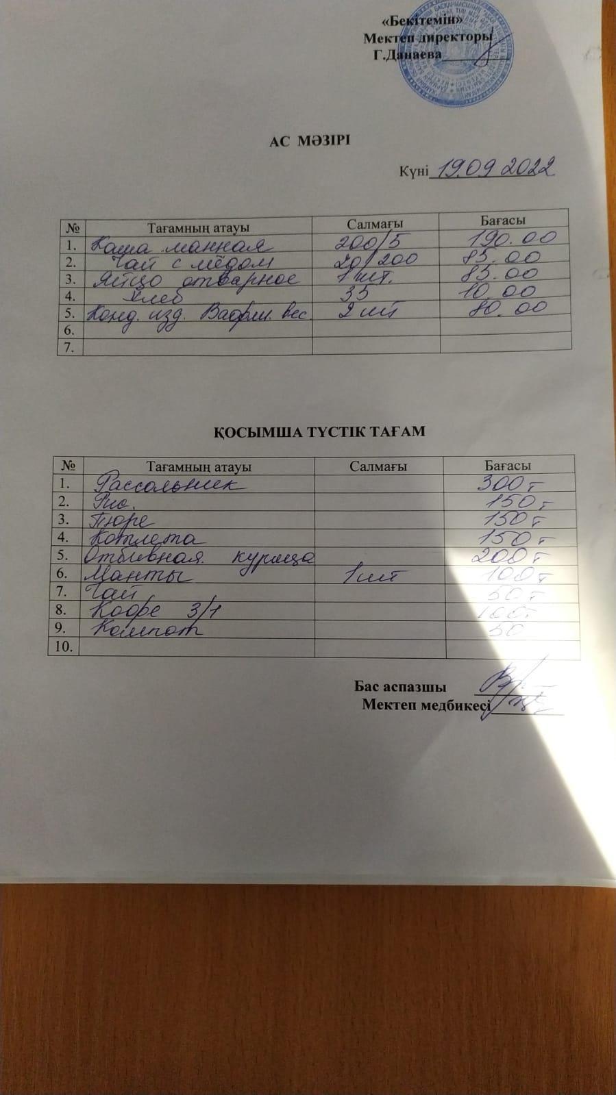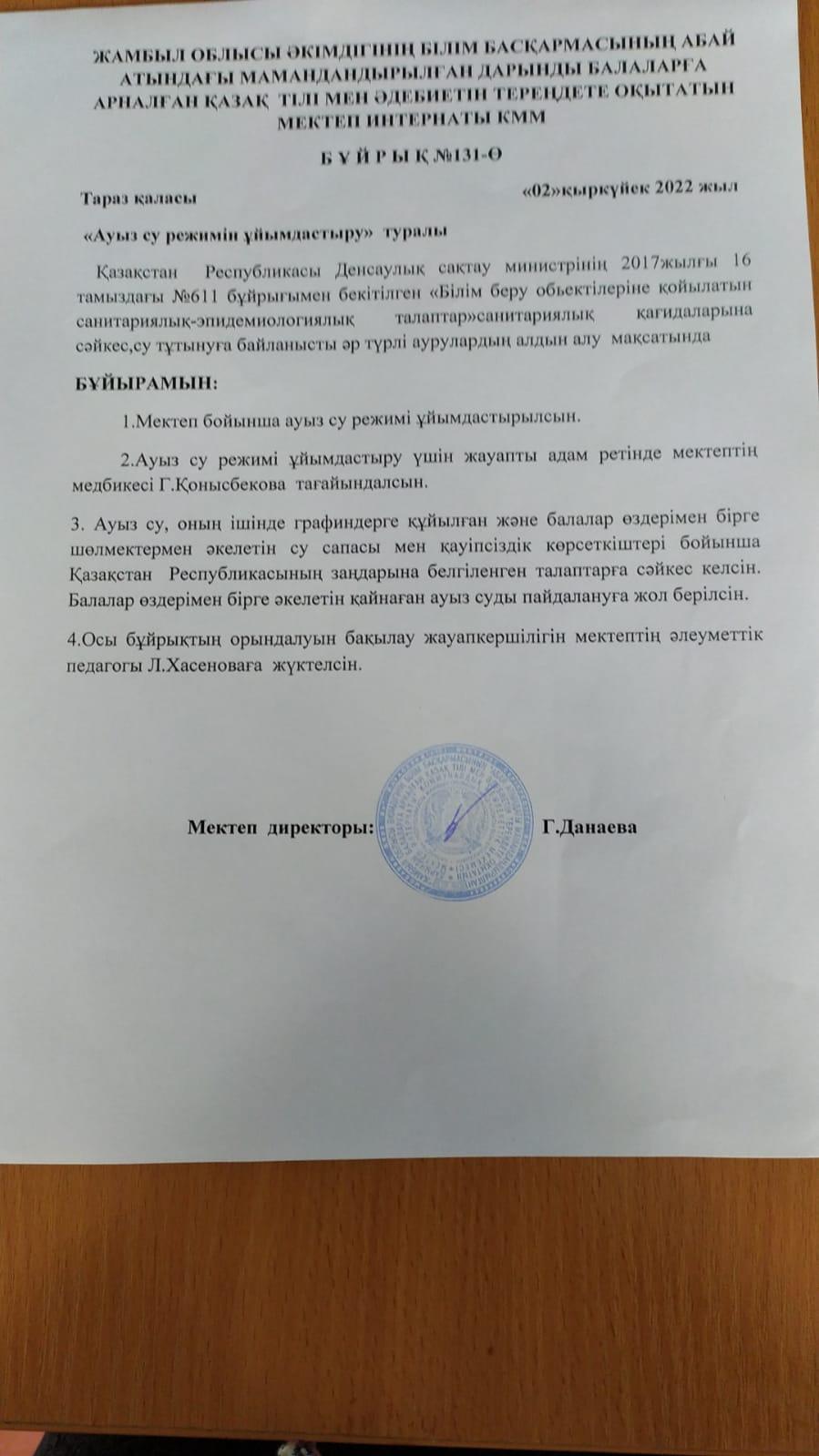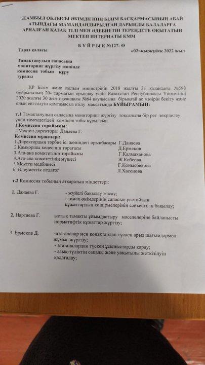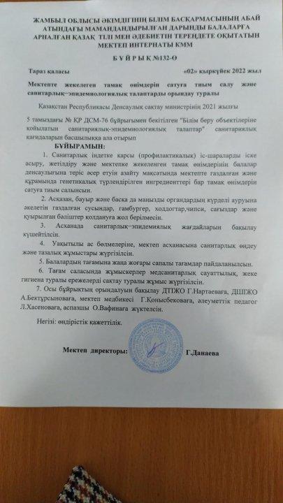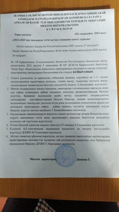 Республикалық мектеп асханасын өткізу туралы бұйрық