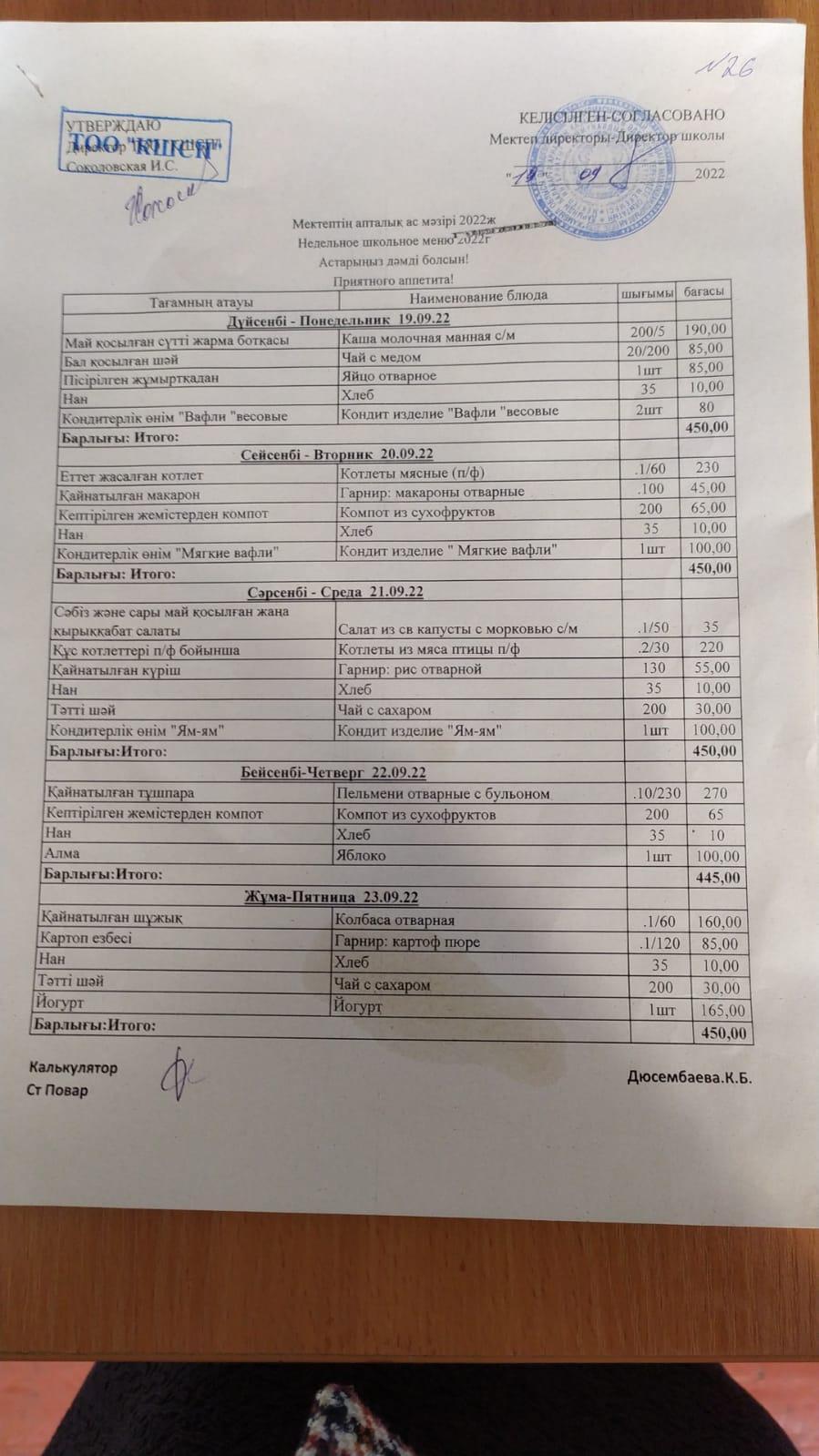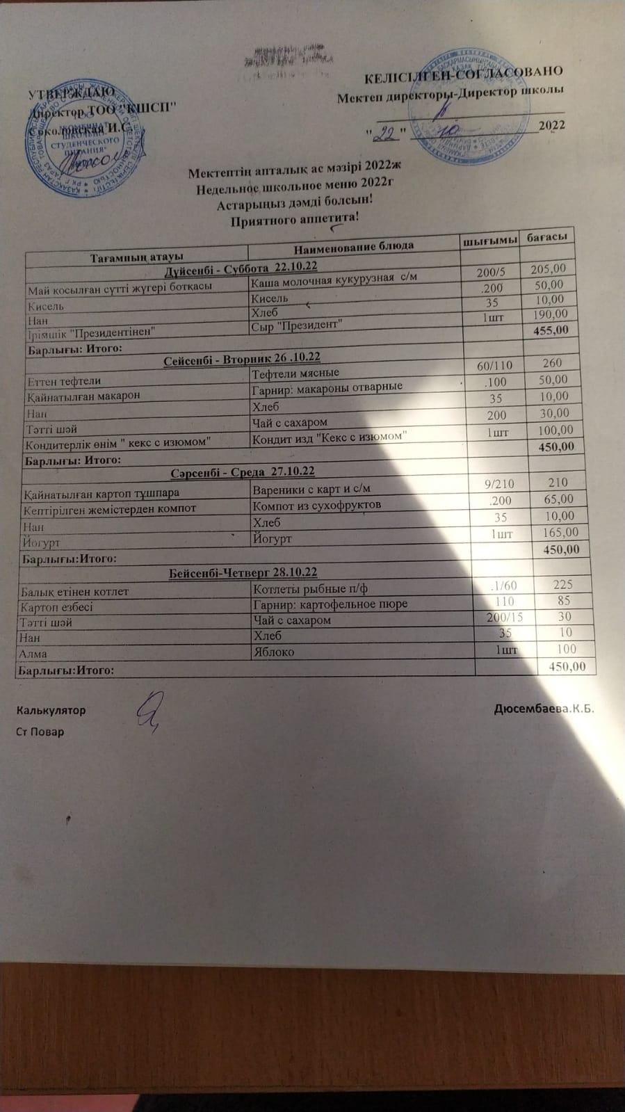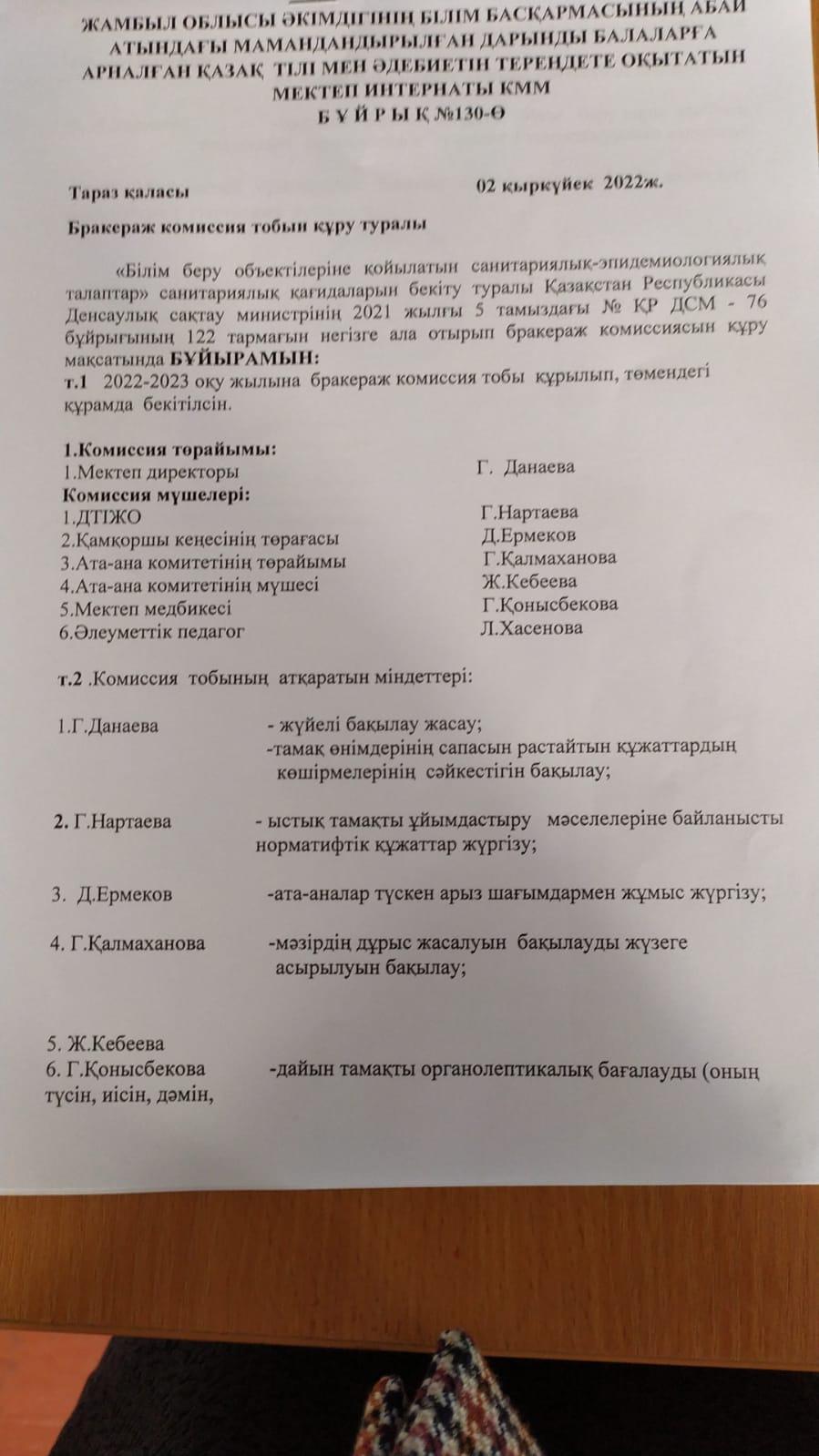 Республикалық мектеп асханасын өткізу туралы бұйрық