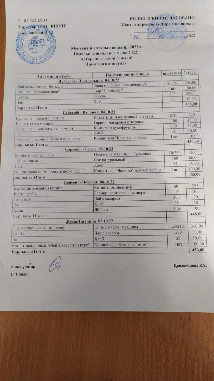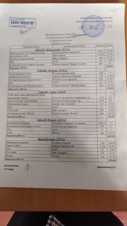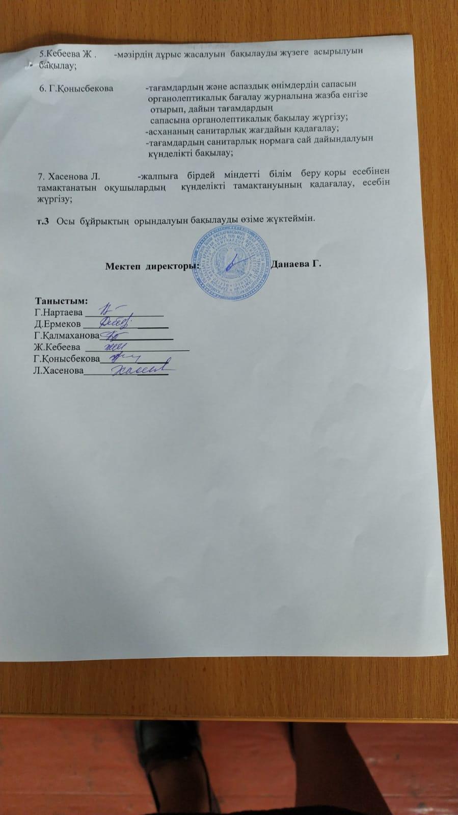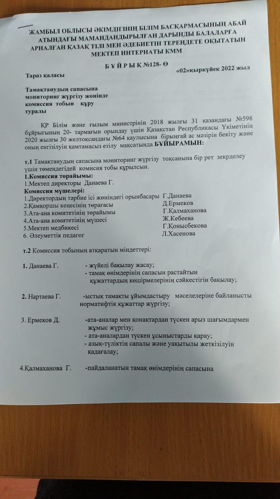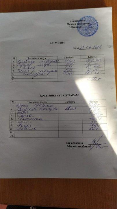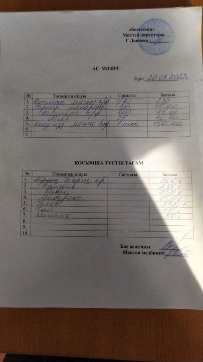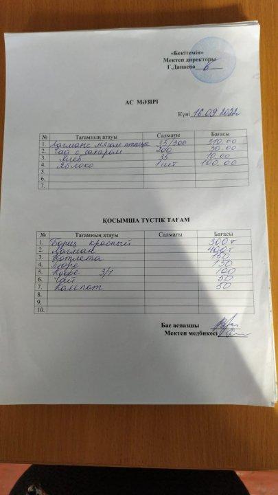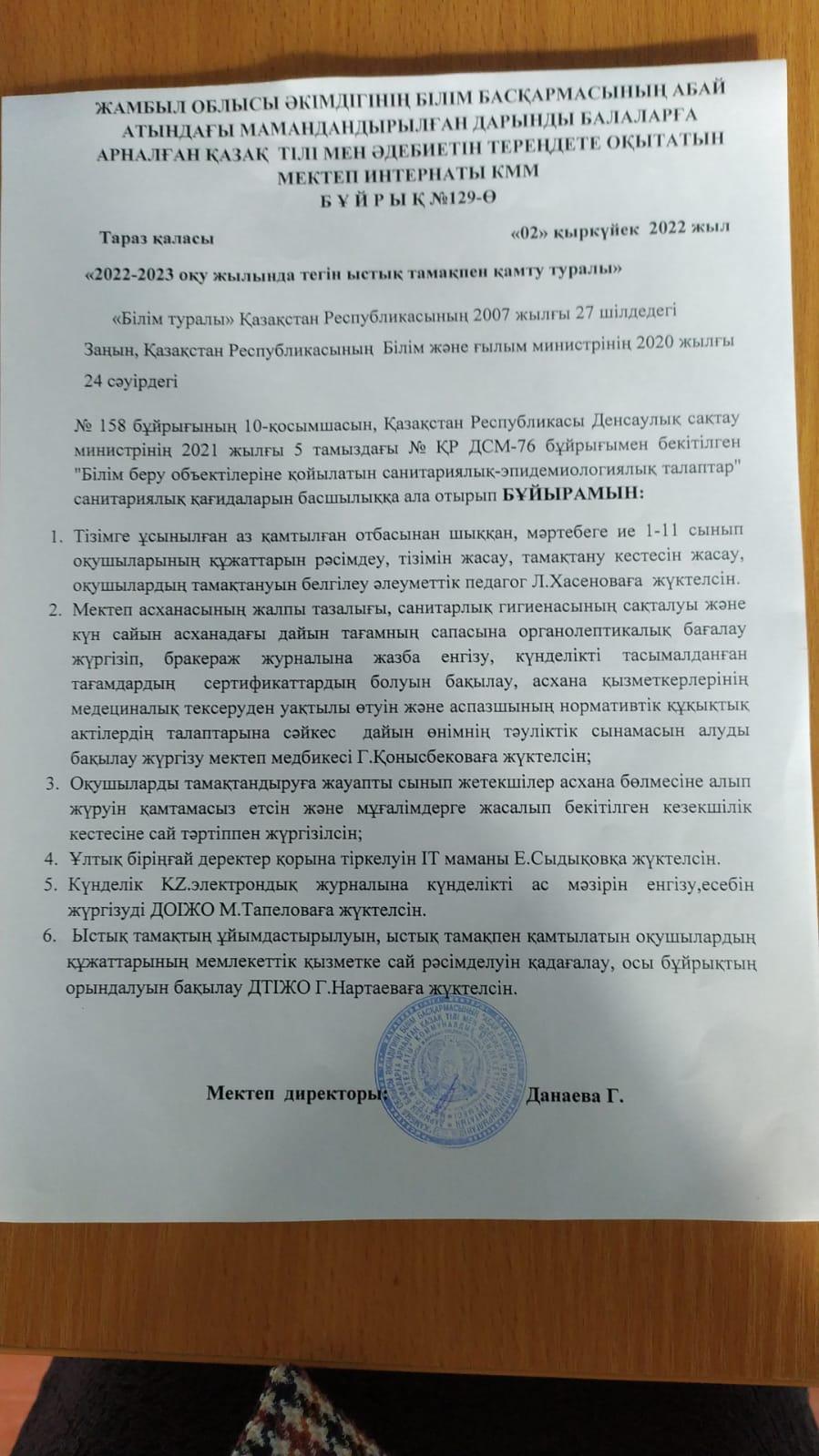 Сәуір айындағы ыстық тамақпен қамтудың бұйрығы