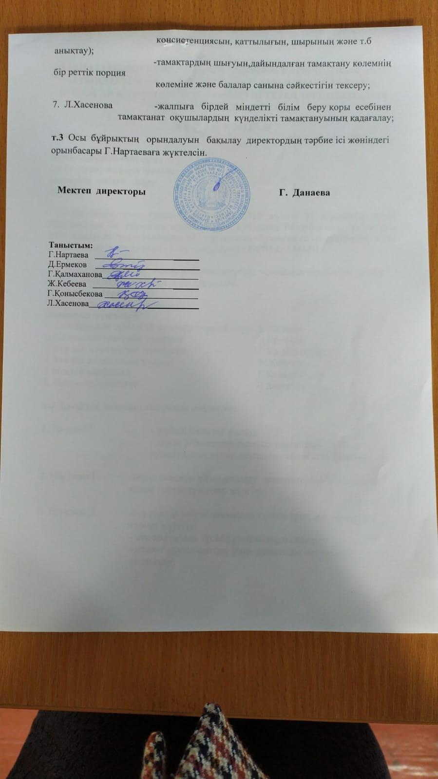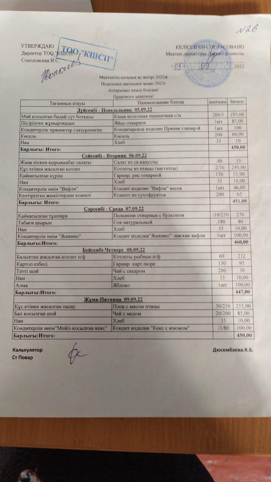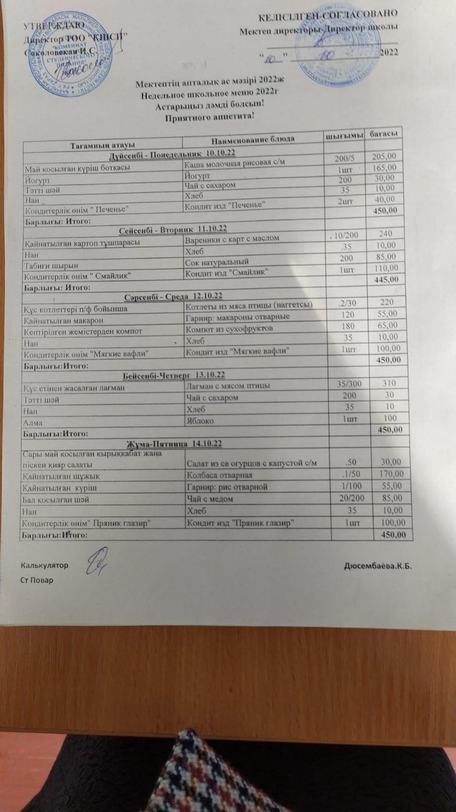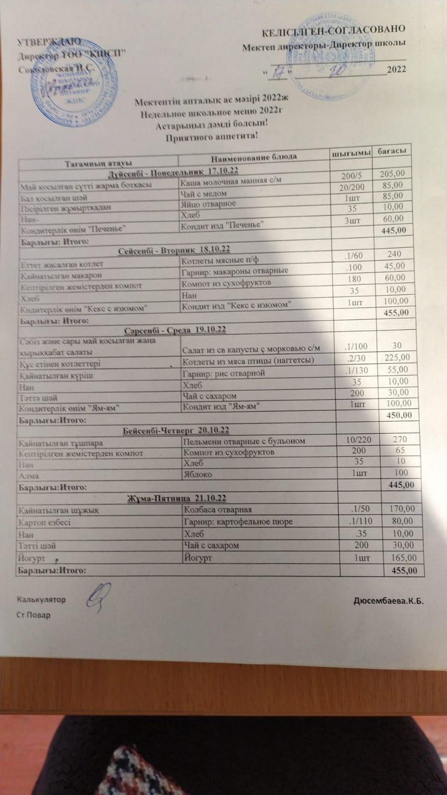 Сәуір айындағы ыстық тамақпен қамтудың бұйрығы