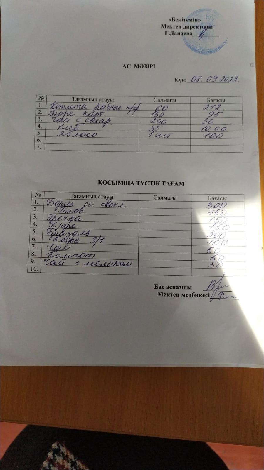 Аз қамтылған отбасынан шыққан балаларды ыстық тамақпен қамту туралы бұйрық