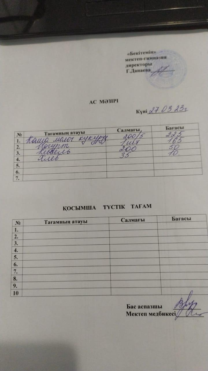 27.03.23-31.03.23 ж.ж күні аралығындағы мектеп асханасының апталық ас мәзірі