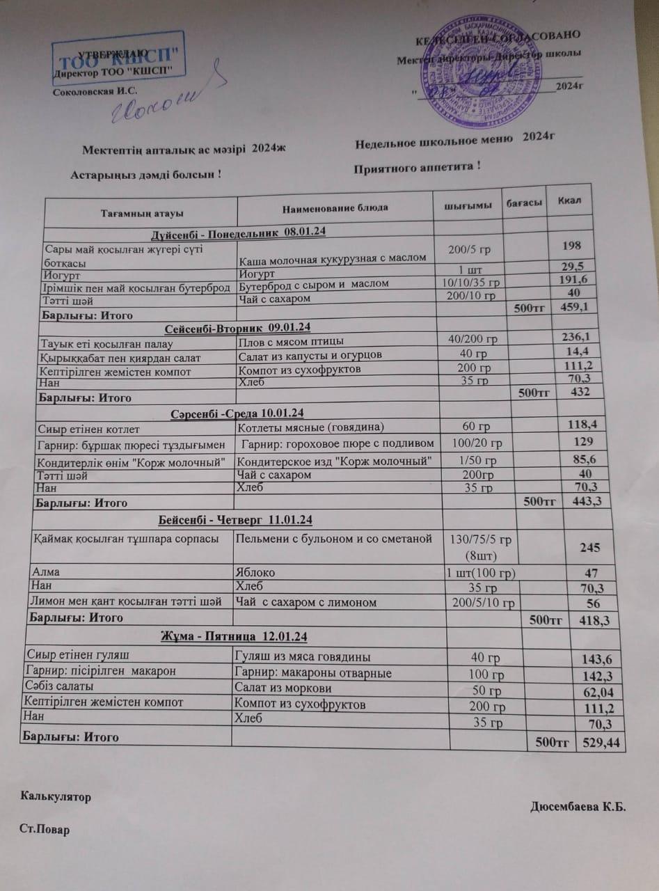 25.09-29.09.23ж.күнгі мектеп асханасының апталық ас мәзірі